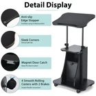 We ingeniously combine adjustable features to a lectern podium to make it more flexible and convenient in use. The tabletop’s height can be adjusted from 27" to 45" and the angle can be adjusted between 0 and 180°, which allows you to find a comfortable position for working, reading or giving a speech. And the books, laptop or lecture drafts won’t fall off thanks to the edge stopper. In addition to the adjustable features, the laptop desk is equipped with large capacity storage space for cups, books and other sundries. Besides, the bottom cabinet with door gives good protection to private items. What’s more, there are 4 casters that roll smoothly on different surfaces, and 2 of which are lockable to set the laptop cart still. In all, the laptop workstation is functional and versatile, suitable for various occasions such as homes, offices, and schools. SHOP NOW ▌ PRODUCT DETAILS: Description: We ingeniously combine adjustable features to a lectern podium to make it more flexible and convenient in use. The tabletop’s height can be adjusted from 27" to 45" and the angle can be adjusted between 0 and 180°, which allows you to find a comfortable position for working, reading or giving a speech. And the books, laptop or lecture drafts won’t fall off thanks to the edge stopper. In addition to the adjustable features, the laptop desk is equipped with large capacity storage space for cups, books and other sundries. Besides, the bottom cabinet with door gives good protection to private items. What’s more, there are 4 casters that roll smoothly on different surfaces, and 2 of which are lockable to set the laptop cart still. In all, the laptop workstation is functional and versatile, suitable for various occasions such as homes, offices, and schools. Specifications: Color: Black Material: Engineered Wood, Steel Overall Dimensions: 21.5" x 15.5" x 27-45" (L x W x H) Net Weight: 56 lbs Weight Capacity of Tabletop: 66 lbs Weight Capacity of Shelf: 33 lbs Desktop Tilt Angle: 0-180° (Recommend 45°) Package Includes: 2 x Laptop Cart 1 x Instruction ▌ Contact & Returns: If you have questions about purchases from us contact us through eBay's Message Center. Items should be returned in their original product packaging and all accessories in the original shipment must be included if you would return the item. ▌ Shippment: • Free Standard Shipping on all items. • All orders are shipped out via UPS, USPS or LTL. • Transit time is 2-7 business days varying on customer’s location to fulfillment center. • Tracking numbers will be automatically updated once order is shipped. • We only ship to the Lower 48 States, no current shipping to Hawaii, Alaska, Puerto Rico, U.S. Virgin Islands, nor Guam. • We do not ship to FPO, APO or PO Boxes.