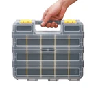 Description The Double Side Tool Organizer is made of durable and heavy duty plastic material.Features the transparent cover allows you to see everything at a glance. Two secure latches can open and close smoothly to prevent the inner items fall off while carrying. The top handle can easy to carry the storage organizer. We save customer's cost in each step of our operation, with a guarantee of high-quality and reliability. We delivery the most saving and best value to our customers. Choose the products and you will never worry about overpaying or any after sale service. All products come with 1 year quality guarantee. Made of durable and heavy duty plastic material. Double side design offers enough storage space. The attractive color combination in black body, clear lids, yellow safety clasp and dividers. One box includes 30 removable partitions and 4 fixed sections. All removable dividers are easily slide on and off to customize the storage space. The fixed sections add an extra space for special need. The clear plastic lid allows you to find the right part quickly and efficiently. Two secure latches can open and close smoothly to prevent the inner items fall out. Excellent for organizing parts, fasteners, screws, nails, nuts, bolts, electrical connectors, hair accessories, bead, fishing tackle and various other smaller construction items. Box size:12.6" L x 10.6" W x 3.2" H, approximate adjustable compartment size 2.56" L X 2.36" W.