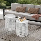 2PCSModern In/Outdoor Side Table Metal Frame Accent Table Round End Table Decor Welcome to my store 2PCSModern In/Outdoor Side Table Metal Frame Accent Table Round End Table Decor Description Made of high-quality iron through the spray molding process, this side table is sturdy and durable to ensure long-term use. The top has a smooth placing surface and the openwork design on the surface is very pleasing to the eye. It is a great table to place in a garden corner or patio, and can also be a good decoration for a patio and home. Key Features Build to Last: It is made of high-quality iron with a spray molding process , sturdy, waterproof, rustproof, and wear-resistant , with high impact and shatter resistance , so it can be placed outdoors all year round, and has a long service life. Strong Load-bearing Capacity : The high-quality iron material and sturdy construction allow this product to withstand large weights( 66.14lbs , 33.07lbs ), allowing you to use it with confidence. Suitable Height : The height of 19.29in and 16.54in are suitable for most people's height, which is ideal for putting books, drinks, snacks, and flowers (not included) on top to be within reach. Set of 2: The product package includes two tables of different sizes, which are enough to meet your usage needs. In addition, you can purchase more to meet your needs. Powerful Function: It can be used not only as a table end/side table, nightstand, decorative table and plant stand in living rooms, bedrooms, balconies and offices, but also as a decorative item in gardens, patios, decks and backyards. Enjoy Cozy Time: You can place this table on your balcony to enjoy a cup of afternoon coffee, or you can place it in your garden to view the flowers you have planted and feel the spring. Space-saving : Its maximum size is only 14.57*19.29in, and you can nest it without taking too much space. You can easily put it on the balcony, by the sofa and so on. In addition, the spacious bottom space can be used for storage, thus saving you even more storage space. Vintage and Elegance: It comes in a classic white color scheme that is simple and warm. The unique openwork floral pattern gives it a classic chic appeal and interesting light and shadow effect that will fit nicely into any modern, vintage and rustic decor. Hassle-free Cleaning: Thanks to its smooth surface and simple structure, you can easily clean it with water and a rag (not included). Details Openwork Pattern: The circumference of the product is designed with with openwork floral patterns, which is not only highly aesthetic but also allows ventilation. Smooth Edges: Its tabletop edges are designed with smooth curves, so it effectively avoids scratching your body and your clothes. Application It is suitable for use in gardens, balconies, bedrooms, living rooms, kitchens, cafes, parks, porches, backyards, pool sides, decks, lawns, taverns, and other places. Specifications Material: Iron Process: Spray Molding Style: Modern Color: White Indoor/Outdoor Usage: Indoor and Outdoor Mount Type: Freestanding Shape: Cylindrical Assembly Required: No Load-bearing Capacity: 30kg/66.14lbs, 15kg/33.07lbs Number of Items: 2 Gross Weight: 3.92kg/8.64lbs Net Weight: 3.4kg/7.94lbs Package Size: 53*43*43cm/20.87*16.93*16.93in Product Size Large(D*H): 37*49cm/14.57*19.29in Medium(D*H): 32*42cm/12.6*16.54in Package Included 2*Side Tables Notes Please double-check that the size fits before ordering. Please note that this product is intended for decorative use in most places and items placed must be within the load-bearing range. Please note that items such as drinks and magazines are not included in this product. Please allow the slight color difference caused by the shooting light and 1-3cm error due to manual measurement, and make sure you do not mind before you order. NOTE NOTE:The bottom of table is not very slip resistant and cannot be used as a garden stool. Payment Delivery details Terms of sales About us Contact us Payment We accept ebay payment 。 Fees such as import duties, taxes are not included in the item price or shipping costs. These charges are the buyer's responsibility. Delivery details Shipping: 2-9 working days to: USA Terms of sales We maintain high standards of excellence and strive for hundred percent customer satisfaction. Feedback is very important to us. We hope that you contact us immediately before you give neutral or negative feedback, so that we can address your concerns. It is impossible to address issues if we do not know about them! About us Your satis faction is our ultimate goal. We work hard to earn your trust and future business. Our certified technicians have tested each item before shipping. The unit comes with 1 year limited warranty on all manufacturing defects. a) If you receive a defective item, you may return it or ask for a discount. Please contact us within 14 days after you receive the package. b) What you returned must be intact and in its original packaging as re? u. Customer is responsible for shipping costs of the returned item. c) We will cover the cost of shipping back t with the shipping rate indicated in the registration page. We will send you a new unit or refund the full payment you paid. Thank you. Contact us Business Hour Business Hour: Monday To Friday: 8:30 AM to 5:00 PM (Beijing China time) Due to time zones, our reply to your questions may not be immediately. But within above working time, we will reply your email within 24 hours. If it's non-workdays, please kindly be patient and wait till Monday. Please contact us with ebay message. Please feel free to contact us if you have any questions. Monday To Friday: 8:30 AM to 5:00 PM (Beijing China time) Due to time zones, our reply to your questions may not be immediately. But within above working time, we will reply your email within 24 hours. If it's non-workdays, please kindly be patient and wait till Monday. Please contact us with ebay message. Please feel free to contact us if you have