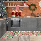 Christmas Sweets Kitchen Rugs and Mats: these Christmas rugs come in practical sizes of approx. 17 x 30 and 17 x 47 inches, making them apt for various uses around the house; The package includes a set of 2 Xmas kitchen floor mats, allowing you to spread the cheer in more than one corner of your home Quality Craftsmanship Creates a Lasting Festive Atmosphere: Xmas Decorative Mats are meticulously created from polyester material, ensuring high durability; Expertly crafted with sturdy edge stitching, these mats prove to be enduring and ideal for high traffic areas in your home; These Christmas kitchen decor mats promise to keep up with your festive cheer throughout the holiday season, year after year; Their lasting quality is exactly what you need for such a joyous time Xmas Designs That Brighten Spaces: each of our Christmas kitchen mats boasts a unique printed design, adding a splash of color and joy to any space it adorns; These vibrant and cheerful designs capture the essence of the holiday season, turning ordinary spaces into festive corners; They're an effortless way to illuminate any area of your home with the spirit of Christmas Anti Slip Design: the anti slip pattern on the back of the Christmas kitchen rugs helps to increase the friction between the mat and the floor, ensuring that the mat will not move when in use, safer Easy to Care and Clean: no lint, no color fading, no shrinkage, no distortion; Can be vacuumed or hand or machine cleaned
