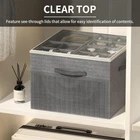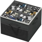 Large Shoe Storage:These sandal organizer won't take up too much space, the shoes are all vertical and compact inside, much more space saving than plastic shoe bins. Perfect for shoe collector, big family or seasonal shoe storage, keeping shoes clean and dust-free. Foldable to save space when not in use. Strong Structure:The shoe organizer use of sturdy zipper, high quality Oxford cloth fabric to make the shoe box stronger as a whole will not tear, the use of PP board instead of poor quality cardboard shoe box will not be deformed overall Adjustable Dividers: The dividers can customize the compartment sizes for meet various storage needs. Store and organize your shoes, sandals and boots. Even clothes, pants, leggings and towels can be stored with this organizer. Clear Cover:The shoe storage box features a clear lid that allows for easy identification of contents while keeping them safe from dust This shoe storage basket measuring 17"L x 17"W x 12 ½"H, suitable for use in bedroom, cubby, entryways, attic, basement, dormitory, cloakroom, garage, closet, RV, shelf, and wardrobe.
