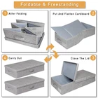 LARGE CAPACITY UNDERBED STORAGE: Each storage bin measures 31.1*15.7*6inch, which fits comfortably under a bed or up on a closet, these under bed storage bins come with a lid that can be slid off in three parts easily to view the contents. Use in the attic, basement, closet, coatroom, bedroom, baby nursery, under cribs and in dorms to protect and seasonal and everyday items, holiday decorations, and memorabilia. Great for use as flat storage bins or underbed storage drawers MULTIPURPOSE STORAGE: Large, sturdy containers for organizing are perfectly sized to slide right under the bed. The under bed organizer is perfect for use as under bed shoe storage organizer, under the bed storage bins, under bed clothes storage, under bed toy storage, under the bed drawers stackable storage bins with lids, under crib storagen STURDY STRUCTURE & STURDY HANDLES: 3 Reinforced sewn-in handles make it easy maneuverability and convenient for you to carry and pull out from under the bed; handy bins make excellent blanket organizers and storage; Lasts longer than underbed storage containers plastic; Keep your bedroom neat and tidy with storage bins with lids that fit your room's existing decor and theme UNDER BED DRAWERS: Comes with of these large-sized under bed storage organizer boxes; Each of these underbed drawers folds up and assembles easily and can be moved instantly, making them incredibly versatile; Transparent Label pockets with a blank card for your remark; With these under the bed storage bins, you can make any room look more put-together and clean VERSATILITY ORGANIZERS FOR BEDROOM: Collapsible, lightweight, and compact, these foldable organizer containers either provide a great storage place, or fold flat for easy storage and portability; Fast assembly gives you instant drawers for under bed without the need for costly construction; A great gift for her/him, gift for women/men, great college essentials storage, college dorm room accessories for college students