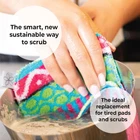 LONG-LASTING - Say goodbye to your old dish scrubber and hello to Skoy Scrub. Made from remnant cotton fibers and a non-toxic hardener, this scrub is designed to outlast old green scouring pads or scrub sponges, saving you money and reducing waste. SAFE ON MOST SURFACES - The versatile Skoy Scrub works wonders on most surfaces, including most non-stick pans, ceramic, glass, and cooktops. Our reusable cleaning scrub can be cleaned and used multiple times. Please test on delicate surfaces before use. EASY TO CLEAN SCRUBBER - Cleaning these dishwashing scrubbers is a breeze. Simply pop them on the top rack of your dishwasher and they are as good as new. If food particles are caught in the soft scrub, simply rub the scrub against itself. SUSTAINABLE CLEANING PRODUCT - We care about the planet. The Skoy Scrub is made in Europe from remnant fibers from the toweling industry. So when you choose Skoy Scrub, you're choosing a cleaner and brighter future. FUN COLORS AND DESIGNS - Who said cleaning has to be boring? The Skoy Scrub comes in a variety of colors and designs, adding a dash of fun to your cleaning routine. Replace your steel wool, brillo pads, brushes, and sponges with our kitchen scrubbers. Introducing the Skoy Scrub, a revolutionary concept in kitchen scouring pads. Crafted in Europe from high-grade cotton and non-toxic hardeners, this reusable dish scrubber is designed to outlast traditional scrubbers including steel wool, brillo pads, brushes, and sponges, saving your pocket and reducing waste. The Skoy Scrub is not just a kitchen scrubber; it's a versatile cleaning companion that works wonders on most surfaces including most non-stick pans, ceramic stovetops, and glass. With its easy-to-clean design, simply pop it on the top rack of your dishwasher and it's good as new. Available in a variety of colors and designs, the Skoy Scrub adds a dash of fun to your cleaning routine. Monochromatic colors and multiple bundle pack options are also available which include the Skoy Dish Cloths along with Skoy Scrub. So why stick to the old when you can switch to the new? Use the Skoy cleaning products for a cleaner, brighter, and happier household experience.