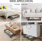 Under Bed Storage with Wheels, 2Pack Under Bed Storage Containers, Under Bed Shoe Storage Organizer, Rolling Under Bed Metal Drawer for Clothes, Blankets(30.71 x 16.93 x 6.69 in) Color Hemp Grey Material PU Fabric and Metal Special Feature Wheeled Style Minimalist About this item 300D PU Fabric Hold Up to 66lbs: Yecaye under bed storage with wheels is made of high quality 300D PU fabric and sturdy metal frame, can hold up to 66 lbs, stronger than other fragile metal mesh, spacious capacity perfect for storing clothes, toys, books, shoes and other heavy items also won't compromise stability and durability 360°Rotating Silent Wheels: Say goodbye to constantly carrying heavy storage boxes around your house.This under bed rolling storage comes with 4 x 360°rotating wheels,two of which have locking function.When you need it to remain stationary, just press the locking mechanism gently. No matter how full the cart is, adults and children can easily slide on the floor and carpet Clear Window & Label: Our rolling underbed storage bins are equipped with a Clear window, you can clearly see the stored items, say goodbye to the trouble of misplacing items. Additionly, the included label is great for labeling contents, allowing you to quickly identify and find the item you're looking for without having to open multiple containers or boxes Versatility: Under bed shoe storage dimensions:30.71 x 16.93 x 6.69 inches (with wheels), (applicable under-bed height > 6.7in), large capacity exceeds your expectation to store more daily items. It can be placed under beds, sofas, tables, and closets to maximize unused space. In addition, this under bed storage drawers can be folded up when not in use, perfect for small families and college dorms that need extra storage space Easy to Install: This rolling storage bin is designed to easy installation and hassle free.Including user-friendly instruction and require minimal effort to set up, which also means you can quickly install and utilize the underbed storage space,saving valuable time and effort,ideal for bed rotting, the blind, and seniors with mobility issues