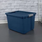 Step up to Sterilite's versatile 20 Gallon Storage Bin with latching lid, ideal for a variety of household storage challenges! The deep recessed lid surface allows totes to stack securely for efficient use of vertical storage space. Large latches keep the lid attached to the base, so contents stay safely stored inside, and provide a comfort grip when carrying. The sturdy design makes it a great option for garages, basements and attics, where you might need a bit more durability. This size plastic storage container is perfect for storing and concealing blankets, seasonal items, sporting gear, and more! Sterilite 20 Gallon Latch Tote, Stackable Plastic Storage Bin with Latching Lid, Blue Outside Dimensions: 23 5/8" x 18 1/4" x 15 1/2" Interior Dimensions at bottom: 18 1/8" x 14 7/8" x 14 3/8" Large latches secure lid to base, keeping contents safely stored inside Deep recessed lid allows for secure stacking, maximizing vertical storage space Comfortable integrated handles for easier lifting and transporting Use good judgment when stacking items, keep heaviest bin at the bottom BPA-free and phthalate-free