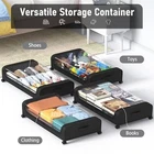 Under Bed Storage Bins - 2/4PACK Under The Bed Storage Containers For Clothes US Under Bed Storage Containers with Wheels,Rolling Underbed Organizer Drawer About this item ✅【Large capacity storage】Set of 2 pieces, each measuring 80 * 44 * 16 centimeters. Equipped with 1 handle and 4 wheels, it can be easily pulled out from under the bed, making it the perfect choice for storing various items. (Please check the size of your under bed space before placing an order) ✅【High load capacity】The storage box under the bed is made of carbon steel and non-woven thick fabric, with a bottom plate to make it more stable. Transparent windows and lids prevent dust from entering while providing visibility of the contents. Easily meet your storage needs. ✅【Easy to move】Our under bed shoe storage box is equipped with rolling wheels and handles, making it easy to push and pull drawers from under the bed, saving time and energy. ✅【 Multi functional use】The rolling bed bottom storage cabinet provides ample space for your seasonal clothes, blankets, toys, books, and more, keeping your wardrobe tidy. They are very suitable for use in bedrooms, wardrobes, cloakrooms or dormitories, as well as anywhere you can use space. ✅【 Easy to install】The product comes with detailed instructions and installation videos, making assembly easier. Detachable, easy to store when not in use, and does not take up space. Beautiful designs are also suitable for room decoration. Specification Color Black 2pcs Material Polyester Special Feature Transparent Product Dimensions 31.5"L x 17.3"W x 6.3"H Number of Items 2 Unit Count 1.0 Count UPC 727219177773 Size Arc-shaped Number Of Pieces 2 Special Features Transparent Batteries Included? No Batteries Required? No Package List 2*Under Bed Storage Containers Payment Shipping&Delivery details Returns Feedback Contact us Payment Paypal, Visa, e-Check, Credit Card, G Pay etc, Many payment way is accepted. Please be sure your shipping address is correct before make a payment. Shipping&Delivery details We will ship out the item within 2-3 business days after comfirming the payment, appreciate your patience. We do not accept P.O. Boxes. Please provide a physical address. We are always working hard to ensure your package arrives as soon as possible. Please understand that some factors like weather, high postal traffic, and the performance of shipping companies are outside of our control. Returns If you are not satisfied with our products. Please kindly contact us before you open the return request or leave negative feedback.We offer a 30-Day Return Policy on items. Please Kindly contact us for the address before returning the item back, we will solve the trouble for you as soon as possible. Feedback Feedback will be left automatically after we receive your feedback. Please contact us before leaving a neutral or negative feedback. We would try our best to help you solve the problem. Please allow us to reply your email within 24 hours. We will provide the service as best as we can, cause the feedback and is what we are striving for. Please email us through "My Messages" or "Contact seller" if you have any question about our listings or your purchasing. Contact us Feedback will be left automatically after we receive your feedback. Please contact us before leaving a neutral or negative feedback. We would try our best to help you solve the problem. Please allow us to reply your email within 24 hours. We will provide the service as best as we can, cause the feedback and is what we are striving for. Please email us through "My Messages" or "Contact seller" if you have any question about our listings or your purchasing.