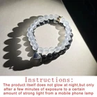 ✲【WARM SERVICE】 If there are any problems, please feel free to contact us. We will respond you within 24 hours and give you a satisfactory response. ✲【TIPS 2】 Because the goods cannot absorb light in the express package for a few days during transportation, please absorb light in the sunlight after receiving the goods, and then you can see the luminous effect in the dark. Depending on the intensity and length of light exposure, luminous brightness will vary, about 30 minutes of exposure can emit a few hours of peripheral light. ✲【TIPS 1】 This luminous bracelet absorbs light sources and emits blue light in the dark. It has a good absorption effect of ultraviolet light. It can be placed in a sunny place during the day. When there is no ultraviolet light at night, it can be put under the light to absorb light. ✲【SIZE AND WEIGHT】 Bead size: 8mm. Bracelet circumference: 19cm/7.5". Each bracelet is about 18g.