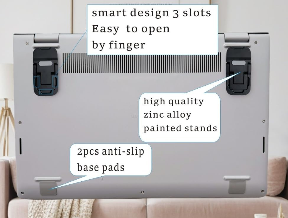 Comfortable experience :Introducing Laptop Stand, designed with an invisible aesthetic that seamlessly blends into your computer. 3 angles heights adjustable keyboard stand offers exceptional ergonomic support Portable function : our laptop stand is lightweight and portable, making it an ideal travel companion. Its foldable design ensures it takes up minimal space in your bag, Despite its lightweight nature, the stand boasts stability and anti-slip features, ensuring your device stays secure while you work Multifunction: keyboard stand for desk can use phone back holder , laptop feet ect similar functions Zinc alloy:laptop stand for desk constructed from durable material ,Make sure laptop accessories is stable while use and does not shake,stand is built to endure daily use while providing excellent heat dissipation to prevent your laptop from overheating Compatible Devices:10-17inch labtop (HP Macbook Dell Lenovo ect ),Phone back hoder , keyboard stand for desktop ect