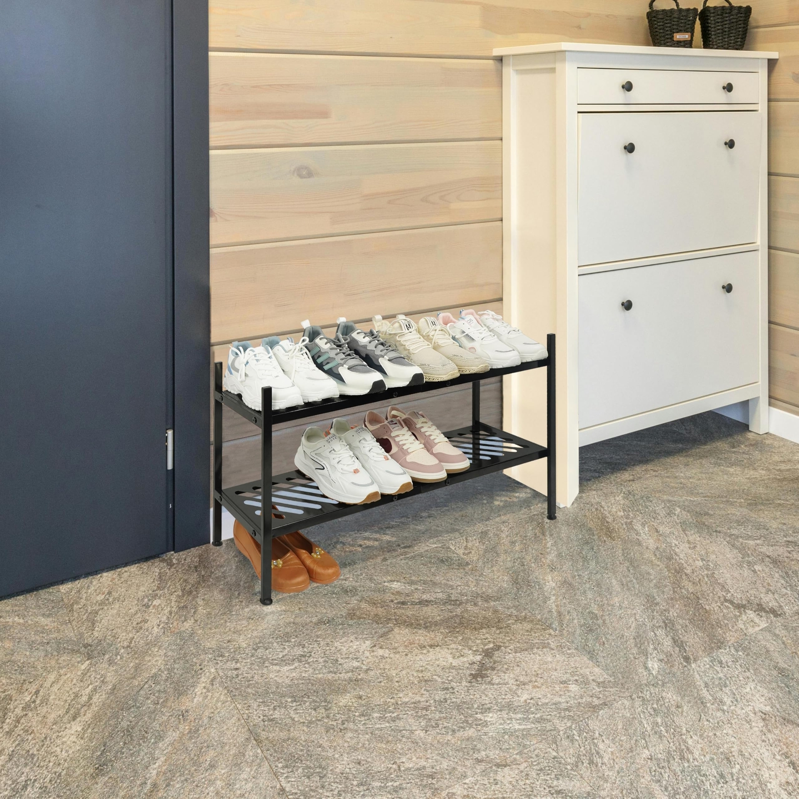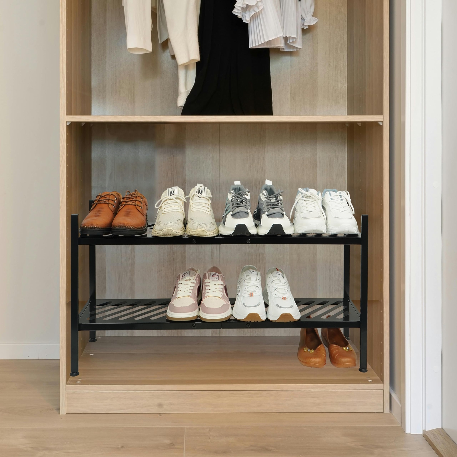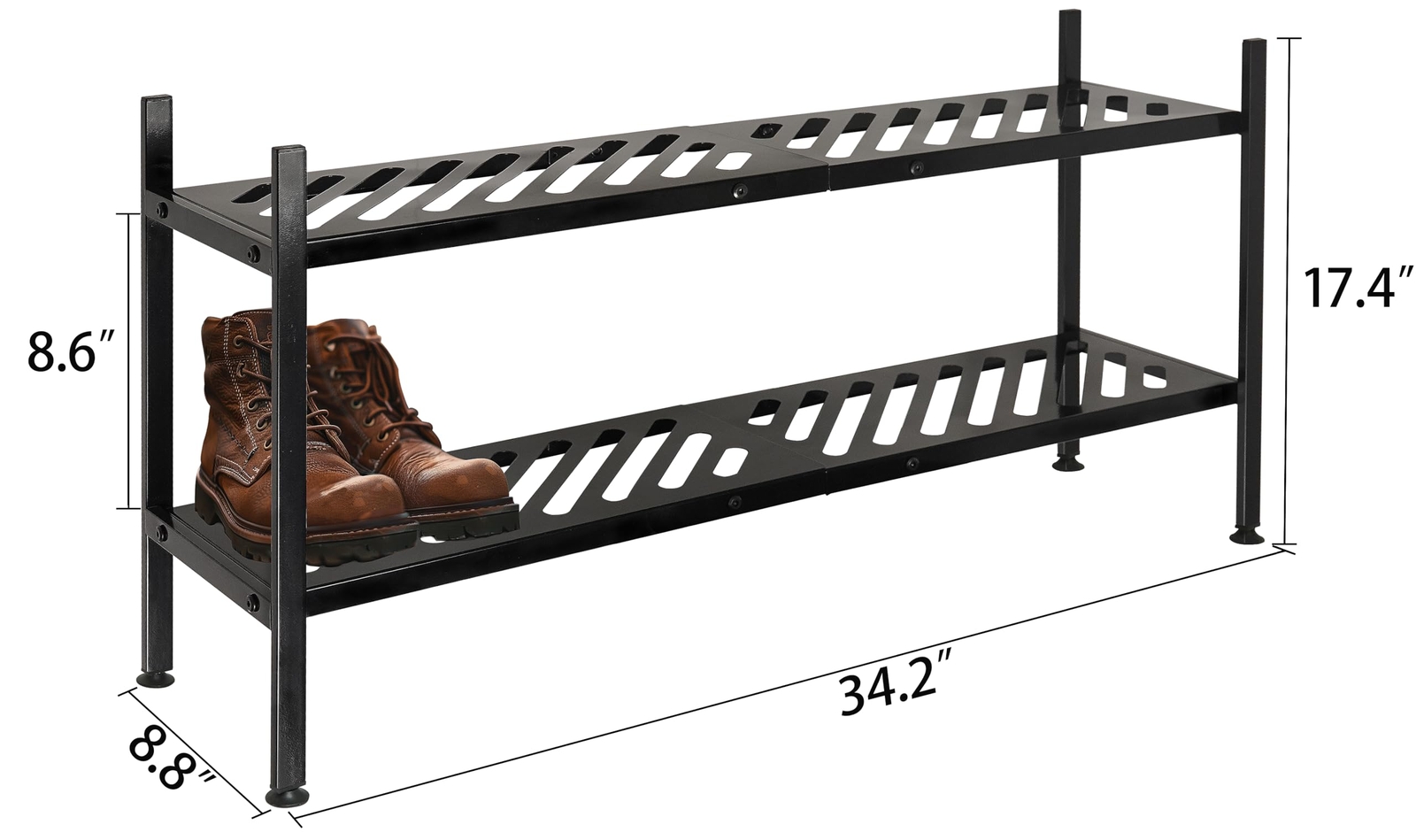 Shoe Rack, 2 Tier Metal Shoe Shelf Stand, Shoe Organizer for Closet, Floor, Heavy Duty, Stackable, Long 35 Inch, Black LARGE CAPACITY: 34.6 inches length can store up to 12-15 pairs of men's, women's and children's shoes, and more short shoes can be stored in the bottom. Provides solutions for entryway, Closet. living room and garage organisation and storage. STACKABLE DESIGN: Includes connectors to stack into multiple units, buy more units to maximise build storage space within the same location. And move freely to the corners you need. STRONG MATERIALS: Made of thick metal tubing for the frame, the heavy-duty two-tier shoe rack is seamlessly constructed from a single piece of sheet iron for a smooth, corrosion-resistant finish. Each shelf can hold up to 55 lbs. EASY INSTALLATION: Includes all required tools and installation instructions, easy to use in just 10 minutes, with adjustable feet on the bottom to balance and protect floors on uneven surfaces. Dimensions of the 2-tier shoe rack: 34.6‘ W x 8.8’ D x 17.3’ H,Height between dividers is 8.3 inches. Shoe Rack for Closet, 2-tier FreeStanding Shoe Shelf Stand, Stackable Shoe Storage Organizer for Floor,Entryway,Bedroom,Long 35 Inch, Metal, Black SHIPPING Domestic Buyers - We ship within 3 business days of payment, usually sooner - We offer FREE shipping on all orders! - We only ship to the lower 48 states, no APO/FPO addresses or PO Boxes allowed - We have confidence in our products, but if you are not fully satisfied please contact us within 30 days of purchase and you will get full refund. International buyers – please note: Import duties, taxes, and charges aren't included in the item price or postage cost. These charges are the buyer's responsibility. - Please check with your country's customs office to determine what these additional costs will be prior to bidding or buying. Return Policy - This product comes with 30-Days Money Back Guarantee. - If you receive an item and it doesn't work properly or you don't like it because of any reason at all, - we have a 100% refund/return policy. We will ship you a new item or refund your money for the full sale amount. - For all returned products, buyers MUST contact us for the returning address. * Order Cancellation Policy ** You can return a product for up to 30 days from the date you purchased it. 1. The seller reserves the right to cancel the special case only due to eBay cancellation fee. 2. The decision of seller is the final. 3. The seller will respond to the cancellation request within 2 business days. Please wait for the result of cancellation. 4. In case the cancellation is not completed by some reasons, the buyer can follow the options below to get the refund. 4.1 The buyer can reject the item when it arrives. 4.2 The buyer can send the item back to the seller within 30 days If the buyer receives item (USA Shipment ONLY). The seller will provide the FREE return label to the buyer when the buyer opens " Return Item" case on eBay by using the reason as "Change my mind" ONLY. 5. When buyer has placed the order. The order will be processed and completed by automatic warehouse system within 5 minutes. In case that buyer sends the cancellation request after 5 minutes of placing the order, the request will be rejected. **Sending direct message to cancel the order is not allowed for every case.* Return Policy For the return case - If buyer would like to return the items for refund or replacement, please CONTACT SELLER to receive the free return label from seller. The refund or replacement will be processed with the tracking number of return label which is provided by seller only. The other ways of return which are not approved by seller will not be processed for the refund or replacement.