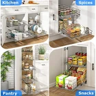 Our premium 2-tier stainless steel pull out cabinet organizer revolutionizes your kitchen storage experience. Designed for homeowners who demand both quality and functionality, this sliding cabinet organizer combines heavy-duty construction with elegant design to solve all your cabinet storage challenges. Upgrade your kitchen with professional-grade organization today! This cabinet roll out shelves system brings restaurant-quality storage solutions to your home, making every cooking experience more enjoyable and efficient. Perfect as a kitchen cabinet shelf organizer. Ideal pull-out home organizers solution. Excellent cabinet organizers and storage for garages or bathrooms. Great as sliding shelves for kitchen cabinets or pull out shelf for kitchen cabinet needs. 【Check Your Dimensions】For proper installation, the dimension of the cabinet shelf organizers is 8" W x 22" D x 16.5" H. Our kitchen cabinet organizers fit standard sizes and please confirm the size you require. 【Premium Heavy-Duty Construction】 Features thicker chrome-plated stainless steel wire grids compared to standard organizers, providing exceptional durability and weight capacity for pots, pans, and pantry items. Rust-resistant coating ensures long-lasting performance. 【Smooth Soft-Close Damping Slides】 Equipped with high-quality soft-close damping slides that prevent slamming and ensure quiet, gentle operation every time. Full extension slides allow complete access to stored items. 【Non-Slip Shelf Liner Included】Comes with removable shelf liner to protect your cabinet base and prevent items from sliding. Perfect for organizing spice jars, canned goods, and small kitchen appliances. 【Easy Installation & Universal Fit】Adjustable width design fits most standard cabinets. No-drill installation possible with included hardware. Works as sliding drawers for cabinets or pull out pantry shelves.