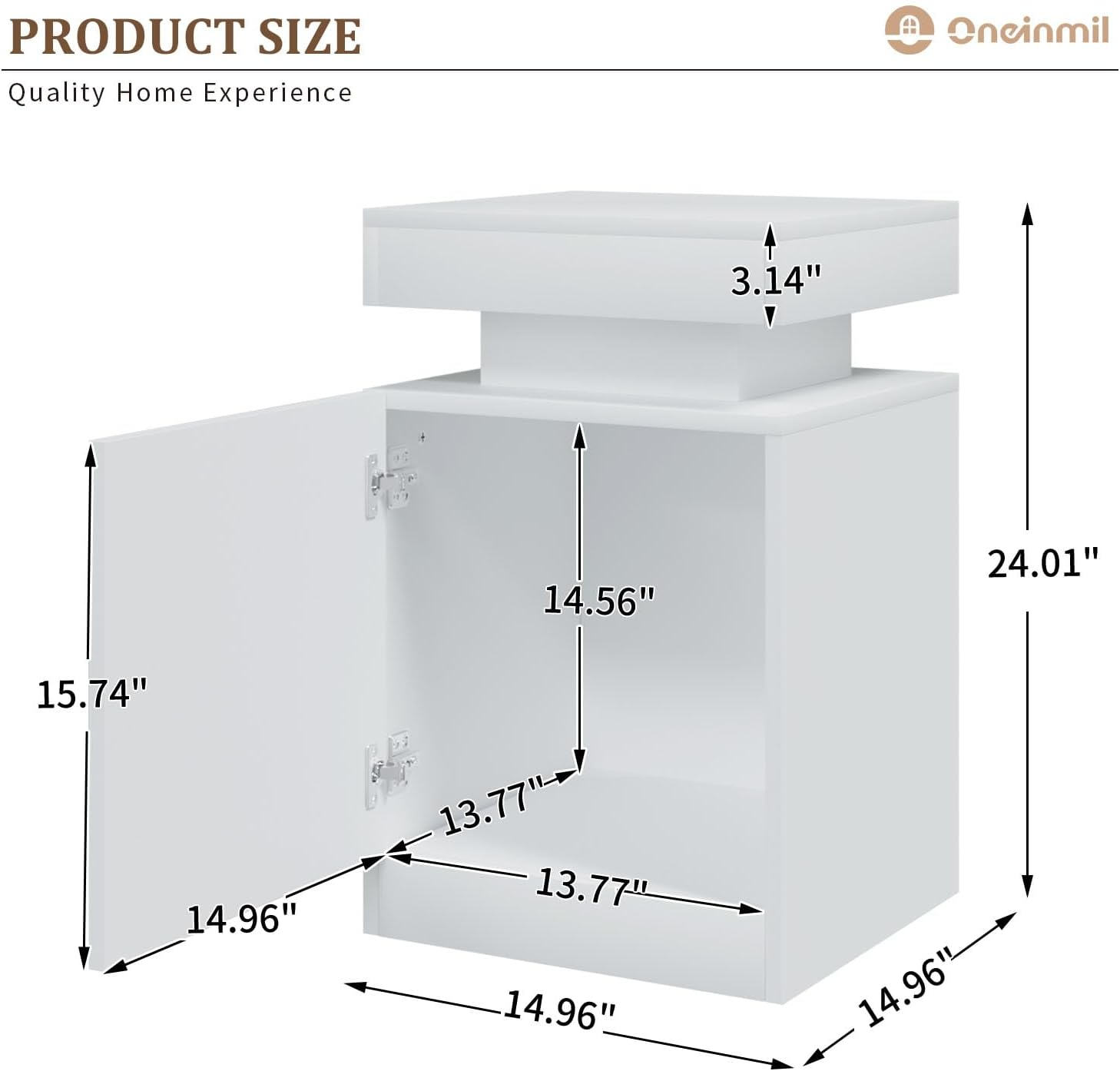 Nightstand Set of 2 with LED Lights,Night Stand with Storage Cabinet for Bedroom,Bedside Table with LED, White Adjustable Light: These led nightstands offer adjustable brightness levels for the LED lights, allowing you to customize the lighting to suit your preferences or activities. Whether you need a soft, ambient glow or a brighter light for reading, you can easily adjust the brightness with the remote Spacious Storage: Each side bed table features a spacious storage cabinet, providing ample space to store your essentials like books, glasses, or personal belongings Sleek and Modern Design: The modern end side table features a sleek and modern design that can effortlessly blend into any bedroom decor. The clean lines, minimalist aesthetics, and neutral color options make these nightstands versatile and suitable for various interior styles Sturdy Construction: These bedroom furniture are made from high-quality materials, ensuring durability and long-lasting use. The sturdy construction provides stability and support for your bedside essentials Easy Assembly: The bedroom nightstands come with a hassle-free assembly process, with all the necessary tools and instructions included in the package. You can quickly and easily set them up without any professional assistance.Tip: Come in 1 box Product Description Ample Storage Space Storage Cabinet Cabinet Size: 13.77"W x 13.77"D x 14.56"H Waterproof & Scratch Resistant Surface COLORFUL RGB LED LIGHTS MORE DETAILS Spacious Storage provide plenty of space to keep and organize your essentials Sleek and Modern Design The clean lines, minimalist aesthetics, and neutral color options make these nightstands versatile and suitable for various interior styles. Waterproof Surface The tabletop is water and scratch resistant and easy to clean. LED Light Strips You can personalize the light color which you like. White/black bedside tables Suitable for all decor styles, adding aesthetic to your room White/black bedside tables Suitable for all decor styles, adding aesthetic to your room 1 WHITE NIGHTSTAND 2 BLACK NIGHTSTAND Collapsed Length Minimum 24.01 Inches Furniture Finish Painted Number of Items 2 Item Width 14.96 Inches Material Type Engineered Wood Is Electric Yes Is Stain Resistant No Maximum Weight Recommendation 57 Pounds Minimum Required Door Width 16.96 Inches Item Type Name Nightstand Frame Material Type Engineered Wood Product Dimensions 14.96"D x 14.96"W x 24.01"H Item Weight 5709 Pounds Frame Material Engineered Wood Tabletop Thickness 1.9 Centimeters Table Design Nightstand Is Customizable? Yes Tilting No Handle Material Plastic Model Number H25001WH Base Engineered Wood Extended Length 24.01 Inches Handle Finish Type White Included Components Assembly Guide Model Name Nightstand Is the item resizable? No Item Weight 57.09 Pounds Recommended Number of People for Assembly 2 Top Color White Base To Top Distance 24.01 Inches Is Foldable No Top Material Type Engineered Wood Shape Rectangular Base Color White Item Height 24.01 inches Color White Nightstands Item Dimensions D x W x H 14.96"D x 14.96"W x 24.01"H Handle Color White Indoor Outdoor Usage Indoor Global Trade Identification Number 00724156457241 Shape Rectangular Base Type Leg Recommended Uses For Product Nightstand or bedside table Style Name Contemporary Top Material Type Engineered Wood Shipping Fast shipping is very important for us. Our standard US shipping service is FREE. Your order will be shipped within 2-3 business days upon full payment received. Your order will be delivered within 2-3 business days after the handling time. We only ship to the confirmed PayPal address. We reserve the right to cancel any order for any reason at any time. We are not responsible for undeliverable addresses. Returns and payment We offer a 30 days return policy from checkout winning date. We allow only PayPal as payment method FeedBack Your feedback very important to us, after you get your package and you are satisfied with our service please leave us positive feedback If you have any problem with your order / any questions please before leave any type of feedback For any questions, using eBay contact system Please visit our eBay store to check out other items for sale! Thank you for shopping at our store.
