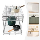 Color: Gray/Silver Width x Depth 20" W X 21" D Dimensions (W x D x H): 54.61*49.53*38.1cm/21.5*19.5*15in 17" W X 21" D Dimensions (W x D x H): 54.61*41.91*38.1cm/21.5*16.5*15in 11" W X 21" D Dimensions (W x D x H): 54.61*26.67*38.1cm/21.5*10.5*15in 14" W X 21" D Dimensions (W x D x H): 54.61*34.29*38.1cm/21.5*13.5*15in Details Raised Guardrails: Raised guardrails around the basket can prevent items from falling, making it more secure and worry-free to place. Round Edges: The arc design can effectively care for your skin compared with the traditional square corners. Rubber Rail Lock: It can prevent the basket from automatically sliding out, so when you push the basket in, be sure to snap in. Package Included 1* Pull-out Cabinet Organizer All Accessories for Installation 2-Tier Kitchen Cabinet Pull Out Shelf and Drawer Organizer Slide Out Gray/Silver Description Are you still struggling with cluttered cabinets and inadequate kitchen space? Then you can't go wrong with our pull-out cabinet organizer. It is made of high-quality iron and adopts an exquisite chrome-plating process, so it is sturdy and durable. Its pull-out design allows you to easily get items inside the cabinet, which is convenient and fast. The 2-tier basket provides you with enough space to store dishes, spices, and other items. Such a beautiful and practical pull-out cabinet is a good assistant for your kitchen. Width x Depth 20" W X 21" D Dimensions (W x D x H): 54.61*49.53*38.1cm/21.5*19.5*15in 17" W X 21" D Dimensions (W x D x H): 54.61*41.91*38.1cm/21.5*16.5*15in 11" W X 21" D Dimensions (W x D x H): 54.61*26.67*38.1cm/21.5*10.5*15in 14" W X 21" D Dimensions (W x D x H): 54.61*34.29*38.1cm/21.5*13.5*15in Features Sturdy and Durable: Premium iron and exquisite plastic spraying process make this item strong, wear-resistant, corrosion-resistant, and rust-proof, ensuring a long service life. High Load-bearing Capacity: Its thickened material and strong fixation guarantee a solid structure and a maximum load-bearing capacity of about 44.09 lbs to bear kitchen utensils with ease. Neat Storage: The 2-tier design provides you with sufficient space to neatly store bowls, spice bottles, plates, and dishes, making your kitchen tidy. What's more, the high enough tier spacing allows you to easily store tall items. Convenient Life: With two silent ball-bearing rails, this item can smoothly slide out, and you don’t have to deeply search into the cabinet when you are looking for what you need. In addition, the pull-out design can also maximize your cabinet space, making it easy to store, organize, and access your kitchen accessories, cleaning supplies, and various odds. Thoughtful Design: The hollowed-out bracket can drain the water left behind in the dishes after washing, preventing the growth of bacteria and making it more reliable to use. Easy to Install: Necessary accessories, a simple structure, and convenient hooks design allow you to quickly complete installation, saving time and effort and reducing the use of screws. Effortless Cleaning: The smooth surface and simple structure make it easy for you to clean it with a wet towel and water. Ideal Gift: The convenient pull-out design and large storage space make this item a great Christmas, New Year, and housewarming gift for your family, friends, and lovers. Customer Service: We aim to provide quality products and services. If you have any problems, please feel free to contact us. We will reply and solve the problem for you as soon as possible. Details Raised Guardrails: Raised guardrails around the basket can prevent items from falling, making it more secure and worry-free to place. Round Edges: The arc design can effectively care for your skin compared with the traditional square corners. Rubber Rail Lock: It can prevent the basket from automatically sliding out, so when you push the basket in, be sure to snap in. Application It is suitable for storing kitchen utensils such as dinner plates, bowls, spices, baking supplies, dishes, cups, essential oils, and other daily items. It is ideal for bathrooms, laundry rooms, kitchens, and pantries and can be served as an under-sink organizer, pot rack, spice rack, etc. Package Included 1* Pull-out Cabinet Organizer All Accessories for Installation Notes Please measure your cabinet opening do not include the hinge width, just measure from the hinge to the opposite side. Please do not use hard tools to clean the basket, as it may scratch the surface of the product and affect the appearance of the product. Please allow the slight color difference caused by the shooting light and 1-3 cm error due to manual measurement, and make sure you do not mind before ordering. Color: Gr ay; 20" W X 21" D Color: Gray; 17" W X 21" D Color: Silve r; 20" W X 21" D Color: Silver; 17" W X 21" D Material: Iron, Rubber Color: Gray Style: Modern Shape: Rectangle Assembly Required: Yes Number of Items: 1 Surface Treatment: Plastic Spraying Mounting Type: Cabinet Mount Number of Tiers: 2 Total Load-Bearing Capacity: About 20kg/44.09 lbs Product Size(L*W*H): 54.61*49.53*38.1cm/21.5*19.5*15in Package Size: 54*55.5*16cm/21.56*21.85*6.3in Gross Weight: 5.8kg/12.79 lbs Net Weight: 5.3kg/11.68 lbs Material: Iron, Rubber Color: Gray Style: Modern Shape: Rectangle Assembly Required: Yes Number of Items: 1 Surface Treatment: Plastic Spraying Mounting Type: Cabinet Mount Number of Tiers: 2 Total Load-Bearing Capacity: About 20kg/44.09 lbs Product Size(L*W*H): 54.61*41.91*38.1cm/21.5*16.5*15in Package Size: 45*55.5*16cm/17.72*21.85*6.3in Gross Weight: 5.4kg/11.9 lbs Net Weight: 5kg/11.02 lbs Material: Iron, Rubber Color: Silver Style: Modern Shape: Rectangle Assembly Required: Yes Number of Items: 1 Surface Treatment: Chrome-plating Mounting Type: Cabinet Mount Number of Tiers: 2 Total Load-Bearing Capacity: About 20kg/44.09 lbs Product Size(L*W*H): 54.61*49.53*38.1cm/21.5*19.5*15in Package Size: 54*55.5*16cm/21.56*21.85*6.3in Gross Weight: 5.8kg/12.79 lbs Net Weight: 5.3k