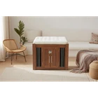 MULTI-USAGE AND VINTAGE DESIGN: Our multi-functional dog crate end-bench combines elegance and practicality. This unique piece of furniture doubles as a comfortable seating area and a secure pet space, effectively utilizing your living area. COMFY AND ROBUST SEATING: This wooden dog ottoman comes equipped with a high quality easy clean cushion, offering a comfortable seating option. Whether you're taking a break or putting on your shoes, this sturdy structure can handle up to 300 lbs, promising durability. DURABLE METAL AND DESIGNED LOCKER: This Pet Friendly ottoman features specially designed style buckles and sturdy, durable metal components that make it easy and safe for both you and your pet to use. MOVABLE BASE WITH WHEELS: This product is equipped with a movable base featuring wheels, providing convenient functionality and making it easier to clean and maintain. ROOMY AND SAFE: The bench dog ottoman measures 30.25"L x 25.1"W x 25"H, providing ample internal space of 28.9"L x 22.6"W, suitable for small to medium dogs. It features a designed sturdy vintage door with black metal locks and handles, ensuring easy access and safety for your pet. The steel bars offer excellent ventilation and visibility, making a comfy space for your pet. EASY UPKEEP: This dog crate bench design prioritizes your convenience. With a removable cushion and easily accessible doors, cleaning and maintenance are effortless, promoting a clean living space for your pet. MORE APPLICATIONS: May in various home space, as a organizer, decor piece, storage solution, it is very stylish and cozy. EFFORTLESS ASSEMBLY: We strive to make assembly as smooth as possible. Detailed instructions and essential hardware are provided for an easy assembly journey. DETAIL&CARE Product Dimensions 30.25”L x 25.1”W x 25”H, 64.46 LBS Package Size 34”L x 27.5”W x 9”H, 68.45 LBS Material Particle Board+MDF Style Mid-Century Modern Color Walnut Indoor Outdoor Usage Indoor Country of Origin CHINA About Finish Liquids should be immediately blotted with a damp cloth. Do not use surface cleaners that could remove the finish. About Hardware Hardware may loosen over time; periodically check to make sure all connections are tight. About Color Real Product's Color may be a little different from the image due to the different lighting or monitor's display. MORE APPLICATIONS May in various home space, as a organizer, decor piece, storage solution, it is very stylish and cozy. COMFY AND ROBUST SEATING This wooden dog ottoman comes equipped with a high quality easy clean cushion, offering a comfortable seating option. Whether you're taking a break or putting on your shoes, this sturdy structure can handle up to 300 lbs, promising durability. DURABLE METAL AND DESIGNED LOCKER This Pet Friendly ottoman features specially designed style buckles and sturdy, durable metal components that make it easy and safe for both you and your pet to use. MOVABLE BASE WITH WHEELS This product is equipped with a movable base featuring wheels, providing convenient functionality and making it easier to clean and maintain.