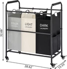 Product Description 3 Bag Laundry Sorter Cart, Laundry Hamper Sorter Basket with Heavy Duty Lockable Rolling Wheels for Clothes Storage, 3 Colors 【Stable】 Cast iron and metal lacquer finish makes the frame anti-rust with an extra horizontal bar making a solid frame 【 Large Capacity】Each heavy duty bag holds 13 Gallons of clothes to increase your use efficiency.Dirty laundry baskets in different colors make it easy to sort the dark and light colors of your clothes 【Removable Laundry Bags】Each laundry bag can be taken out individually from the 3-part laundry sorter, just use the two metal handles to lift the laundry bag for easy access to the laundry room 【Durable】Heavy-duty casters for smooth transport of the laundry organizer to the laundry room.The foam handle can ensure non-slip during use, Four 360° wheels (2 locking) on the bottom 【Easy Assemble】Clear and detailed instructions, numbered parts and assembly tools are included in the package to ensure you can assemble this laundry sorter cart easily About Us We are a reputable seller with many years of experience selling on eBay. Our goal is to provide high-quality products and excellent customer service. Shipping Items will be shipped within 1-3 business days when we received payment. (Orders are not processed on weekends & holidays) Tracking information will be sent once item is shipped. Delivery time depends on destination and other factors Item is shipped to ebay address. Leaving correct address can minimize delay. For international shipping and shipping to Guam, Hawaii and Alaska, Please contact us before placing the order. International buyers please note: Import duties, taxes and charges are not included in the item price or shipping charges. These charges are buyer’s responsibility. We will try our best to reduce the risk of the custom duties. Local pick-up is unavailable at the moment. Contact Us We reply any email messages within 1 business / working days(off-duty at weekend). If you do not get a response from us, then please check your junk or spam mailbox. Our Business hours: Mon-Fri 9:00-18:00, UTC/GMT +8 hours. Please contact us either by clicking "contact seller" in the "purchase history" section or simply click "ask a question" at the bottom of this page. If you are unsatisfied with our item or service, please contact us before leaving any feedback. We are committed to resolve all issues in a friendly and satisfactory manner.