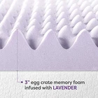 Egg crate topper type memory foam provides a great sleeping surface. In normal temperatures It is somewhat firm, but when you lay down, it starts reacting to the temperature of your body and begins to mold itself to your shape. Then, the weight is evenly distributed along the surface, relieving pressure points and helping you to sleep more without tossing and turning. 3 years . Amazing comfort from body-conforming memory foam Responsive active suspension isolates motion so no disruption for your sleep partner Body-conforming memory foam provides pressure all throughout the body Soothing lavender infusion works as a natural relaxant for calming sleep Product Note: Please allow up to 72 hours for the topper to rise