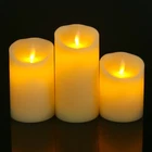 Descriptive: 3 LED Flameless candle (Size: Φ 7.5cm x H 10/12.5/15cm / Φ 2.9" x H 4"/5"/6"), 1 remote control,. Batteries are NOT include This big diameter and 3 different heights flameless candles can decorate your happy time! Safe To Use Around Children and Pets:Light is created by LED, The LED flameless candles without real fire, never worry about fire-related accidents again. Each LED bulb delivers 50,000 hours of lamp life. Use of 2 high-grade AA batteries that will provide 300 hours of continuous ambience 10-KEY REMOTE CONTROL with 16.4-foot range lets you display candles in hard-to-reach places. Timer feature lets you schedule your candles in 2-, 4-, 6- and 8-hour increments, cycling every 24 hours SMOKELESS AND DRIPLESS CANDLES with smooth, classic ivory color are ideal for bookshelves, bedrooms and as safe focal points in holiday wreaths and centerpieces These decorative moving wick candles can be widely applied to birthday, Christmas, home decorations, bars, hotel, parties, holidays, wedding, or other occasions. Specification: Product: LED Candle Lamp Material: ABS Color: Ivory Size: Φ 3" x H 4"/5"/6" On-Off Button: Illuminating the Candle On=Off (Note:Before you use the Remote Control, switch the ON-OFF button to ON at the bottom of the LED candles). How to illuminating the Candle: Move the OFF-ON switch on the bottom to ON. The candle will illuminate until you manually move the switch to OFF. ON-OFF button: Illuminating the Candle On=Off (Note:Before you use the Remote Control, switch the ON-OFF button to ON at the bottom of the LED candles). TIMER: set On/Off Automatic Time feature, set to 2Hours/4Hours/6Hours/8Hours. Mode: Candle-Flickering Lights; Light-Non-Flickering Lights. Brightness Control: Left button to lower the brightness Right button to increase brightness. Package Included: - 1 x LED Candles (Size: D 2.9" x H 4") - 1 x LED Candles (Size: D 2.9 " x H 5") - 1 x LED Candles (Size: D 2.9 " x H 6") - 1 x 10 Key Remote Control More Tips: 1. This candle is made of real wax and is flammable. Do not attempt to light this candle. 2. Keep out of direct sunlight, away from heat sources and out of extreme temperatures or your candle may soften or melt. 3. Constant use of the timer however may considerably reduce battery life.