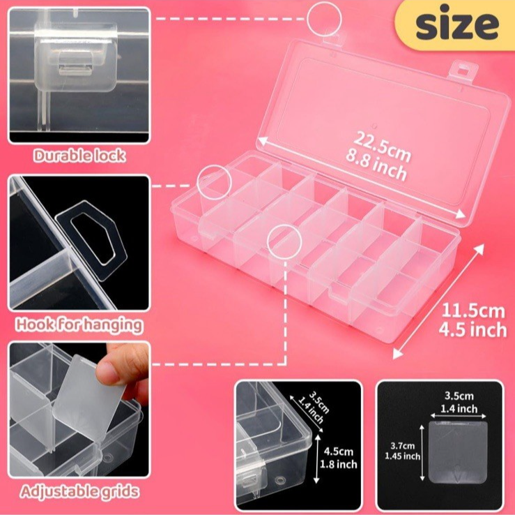 The 3 Pack 18 Grids Plastic Bead Storage Organizer Box is a rectangular shaped storage solution designed specifically for jewelry craft enthusiasts. With each box containing 18 grids, this organizer is perfect for storing beads, gems, rocks, and other small jewelry components. Made of clear plastic, these boxes are compact in size at 8.8"X 4.5"X 1.8", making them ideal for keeping your crafting supplies neat and organized. The clear color allows for easy visibility of your items, while the durable material ensures long-lasting use. ****SAME DAY SHIPPING****