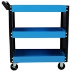 Features and Details: Designed for seamless maneuverability, this tool cart features four 4inch casters—two of which are lockable—paired with an ergonomic wide handle. The combination ensures smooth, effortless movement across various surfaces, allowing you to glide the cart to your desired location with minimal effort. This tool cart features three tiers of spacious storage shelves, engineered to accommodate large tools, equipment, or supplies while keeping your workspace tidy. The oversized shelves are ideal for bulky items like power tools, paint cans, or spare parts, ensuring easy access and efficient organization. Complementing the shelving system, the side-mounted tool pegboard provides customizable storage for hand tools, wrenches, or accessories—keeping essentials within arm’s reach and eliminating clutter. Engineered to adapt to any job site, this rolling tool cart excels in workshops, garages, warehouses, and industrial repair settings—making it an indispensable asset for professionals and enthusiasts alike. Specification: Color: Blue Material: Steel Product Dimensions: 32.6"L×15"W×35.8"H Item Weight (lbs.): 30