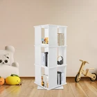 Specification Material: PVC Paint-free Board Process: Carving Color: White Shape: Rectangular Style: Modern Assembly Required: Yes Rotation Angle: 360° Board Thickness: 10mm/0.39in Mounting Method: Mortise and Tenon Structure Mount Type: Free Standing Overall Load Capacity: 50kg/110.23lbs Number of Tiers: 3 Each Tier Size: 40*40*30cm/15.75*15.75*11.81in Product Size: 40*40*97cm/15.75*15.75*38.19in Package Size: 48*46*14cm/18.9*18.11*5.51in Net Weight: 6kg/13.23 lbs Gross Weight: 6.5kg/14.33 lbs Package Included 1* Three-tier Rotating Bookshelf 1 Pair* Gloves 1* Sandpaper 1* English Installation Instruction All Accessories for Use 3 Tiers 360° Rotating Bookshelf Display Free Standing Wood Bookcase Storage Rack Description Against the ever-increasing pace of contemporary life, finding a quiet corner to immerse oneself in the sea of knowledge has become a luxury many people aspire to in their hearts. It is out of a deep understanding of this spiritual pursuit, a blend of classic aesthetics and modern design concepts of furniture masterpieces - a black three-tier rotating bookshelf came into being, it is not only a storage unit but also a home space in the artwork, so that every reading choice, are transformed into a double feast for the eyes and mind. Key Features Robust and Durable: Carved from durable PVC eco-friendly paint-free board, it is formaldehyde-free and odorless , ensuring that the bookshelf is sturdy, stable, and healthy. Rotating Design: Its base can be easily rotated to achieve 360 ° to get books, greatly enhancing the convenience of the reading experience, and can help children develop a good habit of timely storage after reading. Neat Organizer: Adopting a three-tier design, each tier has a capacity space of 15.75*15.75*11.81'', which can accommodate and collect most books and other items in an orderly manner, so you can say goodbye to the clutter. Stable Support: The double-supported non-slip base, screw-reinforced design, mortise-and-tenon construction, and 10mm plate thickness all greatly enhance the stability of the product, with an overall load capacity of 110.23 lbs, allowing you to place your items with confidence. Outstanding Display Effect: In addition to being used as a bookshelf, it can also be used to display artwork, greenery, photo frames, and other decorative items (all not included), making the bookshelf the focal point of the space with both practical and ornamental value. Humanized Height: The total height of the bookshelf is 38.19 inches, which is suitable and takes ergonomics into account to ensure that you don't need to bend over or stand on tiptoe when putting books away, bringing you a comfortable experience of using the bookshelf. Thanks to its compact shape, you can place it in the corner, next to the sofa or table. Simple-up Clean: The smooth surface, simple structure, and open design make the daily cleaning of the bookshelf easy and simple, just wipe it gently to keep it clean and as good as new. Stylish Simplicity: The minimalist aesthetic creates smooth lines and elegant colors that blend harmoniously with modern, industrial, or vintage-style interiors to enhance the style of the space. Installation Fun: Thanks to complete installation accessories, clear installation instructions, mortise, and tenon installation structure, allowing you to complete the assembly in a very short time, enjoy the fun of installation. Customer Service: We aim to provide quality products and services. If you have any problems, please feel free to contact us. We will reply and solve the problem for you as soon as possible. Details Matching Gloves: They can protect your hands from injury during installation. Book Stop: Each tier is equipped with stoppers to prevent books from falling for added safety. Top Platform: It provides you with extra space for photo frames, small potted plants, etc. while enhancing the style. Smooth Edges: The smooth, burr-free edges not only improve aesthetics, but also enhance safety during installation and cleaning. We also provide extra sandpaper to make it easy for you to sand the edges. Application It can hold various kinds of books, magazines, decorations, photo frames, green plants ( all excluded), and so on. It is suitable for placing in the living room, balcony, children's room, study room, living room, school, church, library, shopping mall and other places. Specification Material: PVC Paint-free Board Process: Carving Color: White Shape: Rectangular Style: Modern Assembly Required: Yes Rotation Angle: 360° Board Thickness: 10mm/0.39in Mounting Method: Mortise and Tenon Structure Mount Type: Free Standing Overall Load Capacity: 50kg/110.23lbs Number of Tiers: 3 Each Tier Size: 40*40*30cm/15.75*15.75*11.81in Product Size: 40*40*97cm/15.75*15.75*38.19in Package Size: 48*46*14cm/18.9*18.11*5.51in Net Weight: 6kg/13.23 lbs Gross Weight: 6.5kg/14.33 lbs Package Included 1* Three-tier Rotating Bookshelf 1 Pair* Gloves 1* Sandpaper 1* English Installation Instruction All Accessories for Use Notes Please check the size before purchasing. Please allow the slight color difference caused by the shooting light and 1-3cm error due to manual measurement and make sure you do not mind before ordering. On Dec 22, 2024 at 23:05:02 PST, seller added the following information: