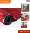 3' x 10' Brush Step Entrance Mat Heavy Duty, Commercial Grade Door Floor Mat Tough Entry Collection Slip Skid Entrance Mat with Rubber Backing Indoor Outdoor Rug Dark Red The large mats are made of high quality polyester and recycled rubber and includes non slip rubber backing which prevents moisture leaks while keeping the mat in place. Since the back side is processed with rubber material, it has excellent anti-slip resistance to stretching, Shrinking, Wrinkle and Abrasion. SIZE: W3'xL10'. 10mm cut with scissors, you can cut freely according to the space of the room. A mat that can be used both indoors and outdoors. The rugged high quality ribbed polyester design allows you to scrape dirt and debris from your shoes. Let the welcome mat clean off your shoes. Perfect for inside or outside entryways near door, closets, laundry, garage, patio or other high traffic indoor outdoor areas.