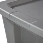 Stay organized with Sterilite’s 30 Gallon Storage Bin. The square, space-efficient shape features a deep recessed lid which allows bins to stack securely, maximizing vertical storage space. The broad rim adds strength and the textured integrated handles make for easier carrying and lifting. Contain and conceal clutter throughout your home to create a neat and tidy living space! This popular large size is ideal for sorting and storing bedding, sporting gear, bulky items, and more. Note: Use good judgment when storing items, don’t overload, keep heaviest bin at bottom, and don’t stack too high. Sterilite 30 Gallon Tote, Storage Bin with Snap-on Lid, Gray Outside Dimensions: 30 1/2" x 19 7/8" x 16 3/8" Interior Dimensions at bottom: 23 3/4" x 15 1/2" x 16" Integrated handles with textured surface provides a sure grip Deep recessed snap-on lid allows for secure stacking Large capacity is ideal for basic storage needs in the garage, basement, and attic Use good judgment when stacking items, keep heaviest bin at the bottom