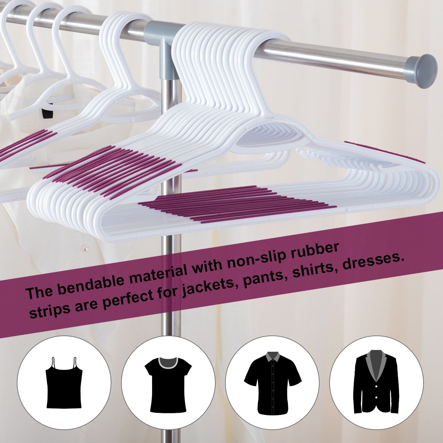 These hangers are a game-changer for my closet! The slim design saves so much space, and the non-slip shoulders keep delicate clothes from slipping. They’re surprisingly sturdy—holding heavy coats without bending—and the built-in clips are perfect for pants and skirts. Love that they work for wet laundry too! Super functional and durable for the price. Highly recommend!