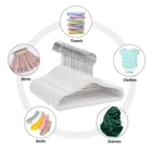 【Velvet Baby Hanger Set】 - 30 non-slip velvet baby hangers, one hanger measures L 10.95'' x W 0.2'' x H 6.8'', the surface is covered with velevt help securely hold your child's clothes and keep them in the right position. Multiple available colors to match with your baby’s clothing items. 【Swivel Hook】 - The hooks on this baby hanger are made of stainless steel super smooth chrome finish hooks that can be rotated 360 degrees. The rotatable hooks give you the convenience and flexibility to hang or access your child's clothes. 【Non-slip design】- The baby hangers are covered with soft, non-slip, odourless and non-shedding velvet, which is more suitable for toddler clothes. The curved shoulders of the children's hanger keep your child's clothes in good shape and protect them from wrinkling or deformation. The V-shaped grooves at the ends of the hanger prevent baby's clothes/children's dresses from slipping off. 【Toddler Hanger】The hanger is made of lightweight but strong ABS material, which is not easy to break. Holds up to 10lbs of clothing weight, perfect for hanging any baby coat. 【Space Saving】 - The hanger is 0.2 inch thickness, this slim design gives a neat, minimalist feel and allows you to maximize your wardrobe space.