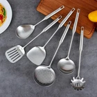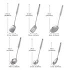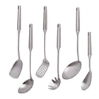【High Quality Food Grade 304 Stainless Steel Material】Stainless Steel Kitchen Utensils Set is made of good quality 304 stainless steel material, solid strong and durable, ergonomic handle design is easy to grip, relax your hands while you are cooking. 【6-Pieces Professional Metal Cooking Utensils Set】: 1 wok spatula, 1 skimmer spoon, 1 slotted spatula, 1 soup ladle, 1 spaghetti spoon, 1 large spoon. Highly polished to a silver matte brushed finish, stain and rust resistant, non-stick, easy to clean. 【Easy to Clean & Space Saver】This stainless steel cooking utensils set is easy to clean and dishwasher safe, so you don't have to worry about causing damage to the product. The hanging loops is to facilitate hanging and save your space! 【Good Choice for Your Kitchen】This whole set of stainless steel kitchen spatula set is very suitable for daily cooking, no more no less just right, to meet your daily cooking needs, every day look at this beautiful spatula set, let you reap the benefits of a good mood at the same time, cooking a delicious meal! 【Perfect for Professional Chefs & Home Use】The entire set of products in a single size between 13-15 inches, made of the premium raw materials, ideal length for cooking, suitable for the professional chefs or home use.