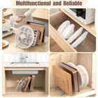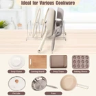 This product is made of high-quality solid 304 steel, with a smooth surface, long-lasting rust resistance, and great durability. The wide shelves can hold thicker kitchen items like frying pans, soup plates, and baking trays, as well as cutting boards, pot lids, and more. It can be placed in cabinets, drawers, or on countertops to organize and store kitchenware, helping to save space in your kitchen. 2.5-INCH WIDE DIVIDER: The ample width allows for storing various kitchenware, including pans, plates, cutting boards, dishes, pot lids, cookie sheets, and more SPACE-SAVING: This 2-pack set helps organize your kitchen neatly and can be placed anywhere, including as kitchen drawer organizers, cabinet space savers, cupboard storage, or on the kitchen countertop, meeting all your storage needs SOLID 304 STAINLESS STEEL: Finely crafted from premium 304 stainless steel, smooth, long-lasting rust-resistant, durable, and reliable ELEVATED DESIGEN: The bottom, with a double-frame design and four anti-slip feet, keeps pans and lids elevated off the countertop for improved hygiene and airflow EASY to CLEAN: Fully washable and dishwasher safe, this product is super convenient for daily use