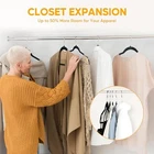 These velvet hangers are a game-changer for my closet! The non-slip surface keeps clothes in place, and the slim design saves so much space. The shoulder notches prevent straps from slipping, and the sturdy build handles heavy coats without bending. Fast delivery and great quality—definitely worth it!