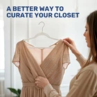 These hangers are a game-changer! The velvet coating keeps clothes from slipping, and the shoulder notches are perfect for straps. They’re sturdy, save space, and leave no creases—my closet has never looked better. Love the swivel hooks for easy access!
