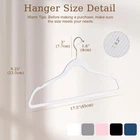 [ 5 Color Options ] Currently available in black, white, gray, pink, and navy blue, perfect for use in stores, clothing shops, and other occasions. Choose the color that best matches your clothing style and color. [ Dorm Room Essentials ] These plastic hangers feature a premium velvet-covered surface, which feels smoother and neater compared to other regular velvet hangers.And the velvet coating is less likely to shed, allowing you to confidently hang your clothes in your dorm room. With grooved sides designed to prevent slipping, you can hang your clothes on this hanger without worrying about them falling off, as it does its job well of hanging your clothes. [ Enhanced Flexibility ] Are you looking for suitable flocked hangers for your new home? Why not try ours? Made of premium plastic material, these felt hangers offer excellent flexibility. Despite their lightweight design, they are sturdy and less likely to break compared to rigid velvet hangers. [ Save Space Hangers ] When using these slim velvet hangers, you will be surprised to find that your closet can actually free up a lot of space. Despite their smaller size compared to wooden hangers, they can hold up to 11 pounds. Ideal for hanging lightweight clothing such as skirts, dresses, shorts, T-shirts, and lightweight coats, these hangers can effectively increase your wardrobe space while keeping it neat and organized. [ Size Details ] Overall dimensions approximately: 17.5”W x 0.2”D x 9.25”H, hook width: 1.6”W. Please confirm whether the size meets your needs before purchasing.