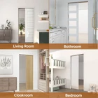 Sturdy Frame: One piece pine wood header to provide more strength. Meanwhile, the pocket door frame kit includes strong complete galvanized steel track and heavy duty galvanized steel stud to bring more rigidity and high corrosion resistance. Soft Open & Soft Close: The pocket door kit has two-way soft-close mechanism. Only a simple mechanism can realize the soft opening and soft closing function. It ensures quiet and safe operation by dampening door opening/closing action. Soft close designed for doors weighing up to 120lbs. Specifications: The pocket door kit is suitable for door thickness 1" to 1-3/4", Door width 24" to 30", Door height 80". Track can be cut down to fit custom opening width as we also mark the major size on the wood header. If you want to fit a shorter door, the studs also can be cut, just operate carefully. Easy to Install: The pocket door frame kit is easy to install. At the same time, we provide step-by-step instructions for you. Also, our professional team is always online to help you solve any problems. Besides, if you want to replace parts after installing the drywall, you can just replace them without removing the drywall. Package List: 4 square uprights, 1 aluminum track with wood slot, 1 two-way soft-close mechanism, 1 hanger with mounting plate, 2 column bases, 2 floor guides, 2 floor adjustable anchors. Quality Service: We are reliable and qualified manufacturer. Professional engineer team is dedicated to the pocket door kit. Professional customer service team help you solve all problems in time. We are always devoted to customer satisfaction!