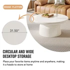 31.5" Round Coffee Table for Living Room Modern Center Table Cream White Coffee Table Features: Spacious Round Top: A 31.5-inch tabletop offers plenty of space for various items, keeping your space organized. Durable and Stable: The 2.36-inch thick tabletop and four sturdy legs provide excellent strength and durability. Safe Rounded Edges: No sharp corners make it safe for families with kids or pets. Versatile Use: Suitable for the living room, office, or any modern space, perfect for casual gatherings or everyday tasks. Easy Assembly & Cleaning: Simple to assemble and easy to maintain, making it a hassle-free addition to your home. Packing Includes: 1 x Coffee table Assemble Instruction Accessories required for assembly