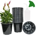 Package Includes: 32 Pcs nursery pots, Nursery Pot dimensions: Height 6.7”, opening diameter 7.5”, bottom diameter 5.3”, 1 x Watering Bottle 500 ml, 10 Pcs plant labels included , you can mark the plants’ name easily,attention : plants not included Material: Our nursery pots is made of recyclable PP plastic, which is lightweight, reusable and restored after being compressed with no broken, they are perfect for indoor outdoor plants, flowers, succulents, seedlings, cuttings and seedlings Great Design: 16 Pcs holes at the bottom can help soil drained and ventilated, ensure proper drainage, strong breathability. while allow plants to breathe freely, and the top raised rim make they are easy to handle and to stack Save Space: These nursery pots are made of thin, Flexible Plastic, they can be easily stacked together for easier storage Widely Used: These pots are ideal for plants cuttings, seedling, plant starting, transplanting and for indoor outdoor plants, you can use them in your yard, garden, porch, greenhouse office, hotel,shopping mall, greenery, patio and more