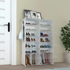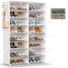 Size: 32"(W) x 12.5"(D) x 48"(H), 【32 Pairs Shoe Storage】Size: 32"(W) x 12.5"(D) x 48"(H).Our shoe rack provides a large space to store shoes, which can hold 32 pairs of shoes. It can store all kinds of high-heeled shoes, high-top shoes, sports shoes, sports shoes, boots, enough to meet the daily needs of you and your family,make your home neat and uncluttered 【Dustproof & Prevent Pets from Chewing Shoes】All shoes can be enclosed by shoe rack, which can effectively prevent dust and easy to clean. And comes with an easy-to-open transparent door that lets you find your shoes quickly and prevents pets from chewing on your shoes.The perforated door facilitates air circulation and prevents the accumulation of peculiar smells 【Expandable Shoe Rack for Closet】 You can customize the design according to your needs, put the shoe rack in the closet, store shoes, hats, clothes, toys, etc.Keeps your everyday storage handy yet organized 【Sturdy Structure】The shoe rack is made of metal frame and environmentally friendly, harmless and durable PP material, waterproof and easy to clean. Maximum load capacity of each cube: 11lbs 【Suitable for all space】The shoe rack is strong enough, spacious, compact, and can be placed in Closet, living room, doorway, bedroom, office. Equipped with installation instructions and installation tools to help you install quickly and easily.