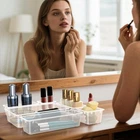 drawer divider trays are perfect for organizing items. Ideal for organizing cosmetics, jewelry, hair accessories, office supplies, craft supplies, tableware, etc. for a variety of drawers, such as bedroom/bathroom/kitchen/office drawers/craft room. 1. 4 Different Combinations of Sizes: The cabinet organizer includes 32 storage bins of 4 different sizes: 9 x 6 x 1.8 inches (4 pcs), 9 x 3x 1.8 inches (4 pcs), 6 x 3 x 1.8 inches (12 pcs), 3 x 3 x1.8 inches (12 pcs) 2. Durable Design: This desk drawer storage bins are not easy to break, the material is more durable for a longer service life, and the color transparent design enables you to more easily see the stored items. 3. Stackable Design: The Storage Container has a stackable design that allows one drawer to organize up to two drawers, increasing the number of items to be stored. 4. Versatile Storage: These drawer divider trays are perfect for organizing items. Ideal for organizing cosmetics, jewelry, hair accessories, office supplies, craft supplies, tableware, etc. for a variety of drawers, such as bedroom/bathroom/kitchen/office drawers/craft room. 5. Easy to clean: Our organizer bins simply need to be wiped down with a damp cloth or rinsed with water to keep clean.