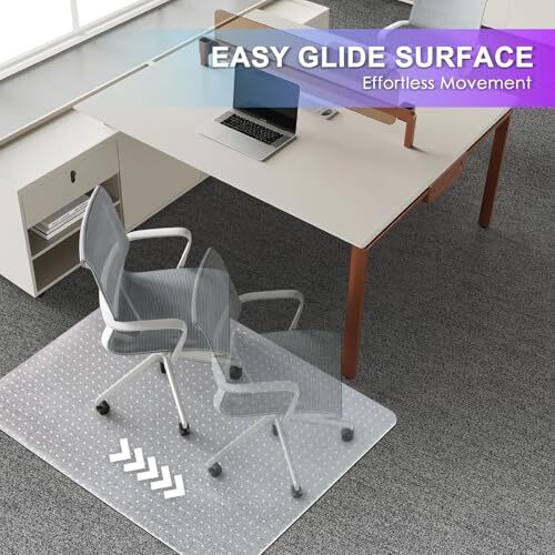 This chair mat is a game-changer for carpeted floors! The heavy-duty PET material stays flat without curling or denting, and the anti-slip spikes keep it securely in place while allowing smooth chair movement. Perfect for protecting carpets while making rolling effortless—highly recommend! Fast shipping too!