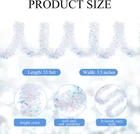 33FT Christmas Tinsel Garland Iridescent Metallic White, White Product Details Shape: Runner Manufacturer: Gloreyan Package Dimensions: 7.64 x 4.25 x 4.17 inches Item Weight: 7.4 ounces Country of Origin: China Item model number: 01 Brand: Gloreyan Color: White Material: Plastic Item Length: 393.7 Inches Is Artificial Garland: Yes Size Information: The Christmas tinsel garlands measures approx. 33 feet/10 meters in length and 3.5 inch/9 cm in width.Very dense and thick ,and sufficient length to meet your daily and holiday use. Material: The Iridescent Christmas garland is made of premium PVC material, durable and no easy to break, lightweight and reusable. Premium Material make it look thicker than usual.High quality foil material makes them glitter and bright. Perfect for Christmas Valentine's Day, New Years and parties,etc. Easy to Use: The Christmas tinsel garland can be cut in a suitable length what you want, and you can hang them on door, window, fence, banister, counter tops, railing and mantle, etc. Exquisite Design: These white hanging garland is designed with bright foil which make the hanging garland look glitter and sparkling in light. Exquisite design, bring interesting and romantic holiday atmosphere to your party. Wide Application: The pink tinsel garland is suitable for Christmas, Halloween, wedding, new year,Valentine's Day, parties and more;perfect for decorating home, gardens, bushes, flowers, Christmas tree, walls, hedges, banisters, doorways, windows, posts, tables, counter tops, railing,mantle,etc. Gloreyan 33FT Christmas Tinsel Garland for Christmas Tree Decorations Wedding Birthday Party Supplies Specifications: Material: Pvc material and wire inside Color: Iridescent White Length: 33Ft/10M Width: 3.5in/9cm Feature: bright Foil design; can be cut into any length Widly Used:Perfect for Christmas,New Year,Valentine‘s day,wedding and so on.