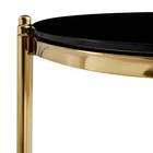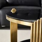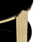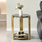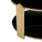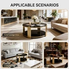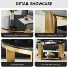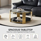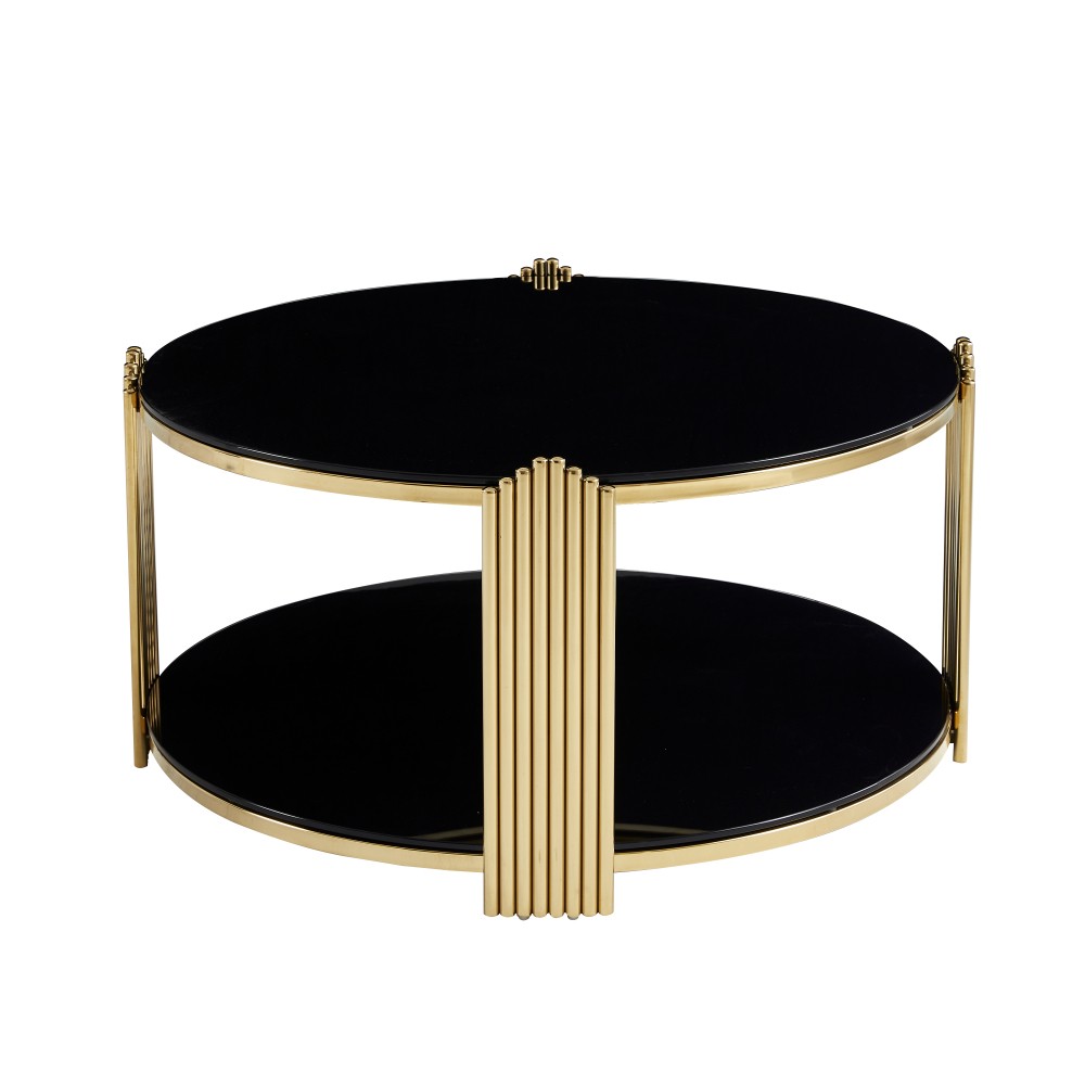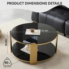 35inch Modern Round Coffee Table, Double-Layer Tempered Black Glass & Gold Stainless Steel Frame Elevate your primary living space with this stylish 35-inch modern round coffee table! Featuring a sleek combination of tempered black glass and a gold stainless steel frame, this table blends contemporary elegance with practical functionality, effortlessly enhancing the fashion sense of your living room. It’s the perfect centerpiece for modern homes, balancing aesthetics and utility to keep your space tidy and sophisticated. Chic Modern Minimalist Design : The striking contrast between the smooth tempered black glass tabletop and the glossy gold stainless steel frame creates an eye-catching focal point. With clean, smooth lines and a minimalist silhouette, this table perfectly complements modern home decor styles—from sleek contemporary to trendy minimalist. It adds an instant touch of luxury and fashion to any living space, making it ideal for coffee and end table use. Efficient Double-Layer Storage : Designed with a double-layer structure, the lower shelf provides ample open storage space for organizing magazines, remote controls, coasters, and other small living room essentials. This practical design helps keep your living room tidy and orderly, eliminating clutter while maintaining the table’s sleek appearance. It’s the perfect balance of aesthetics and functionality for daily use. Sturdy & Durable Construction : The tabletop is crafted from high-quality tempered glass, which is impact-resistant, heat-resistant, and easy to clean—simply wipe with a damp cloth to keep it looking new. The gold stainless steel frame boasts excellent rust and corrosion resistance, ensuring a stable structure that won’t deform even with long-term use. This table is built to withstand daily wear and tear, offering long-lasting durability. Easy Assembly & Flexible Placement : Featuring a modular design, the assembly process is simple and hassle-free—no professional tools or skills required. Clear instructions guide you through the setup quickly. The round tabletop and balanced structure make it easy to move, allowing you to flexibly adjust your home layout according to your needs. It’s a freestanding piece that fits seamlessly into any primary living space. Thoughtful Safety Features : The edges of the tempered glass tabletop are carefully rounded to prevent accidental bumps and scratches, ensuring safe use for families with kids or pets. Anti-slip pads can be attached to the bottom of the table frame, which not only protects your floor from scratches but also enhances overall stability, making your use more secure and worry-free. Key Product Specifications : Color: Black + Gold; Material: Tempered Glass + Sheet Metal (Stainless Steel Frame); Style: Modern; Shape: Round; Storage Type: Open Storage; Installation Type: Freestanding; Assembled Dimensions: 35.00"L × 35.00"W × 18.00"H; Product Weight: 71.00 LBS; Package Dimensions: 38.58"L × 37.80"W × 5.51"H; Package Weight: 82.28 LBS; Suitable for: Primary Living Space, Coffee & End Tables Scenarios. Worry-Free Purchase Guarantee : We stand behind the quality of this 35-inch modern coffee table with a 1-Year Warranty. If you’re not completely satisfied with your purchase for any reason, we offer a 30-Day Free Return & Exchange Policy. Shop with confidence, knowing you’re getting a stylish, durable, and practical addition to your living room!