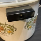 This vintage slow cooker is a must-have for any kitchen. With a 3.5 qt capacity, it's perfect for cooking up stews, soups, and more. The white milk glass material gives it a rustic look, while the veggies design adds a touch of mid-century charm. This K Mart slow cooker comes with a box and works perfectly. It's ideal for those who love to cook and want a stylish addition to their kitchen. Whether you're a beginner or an experienced cook, this slow cooker is easy to use and will save you time in the kitchen. Has some mild oxidation/wear around rim. Others in excellent condition. Works great.