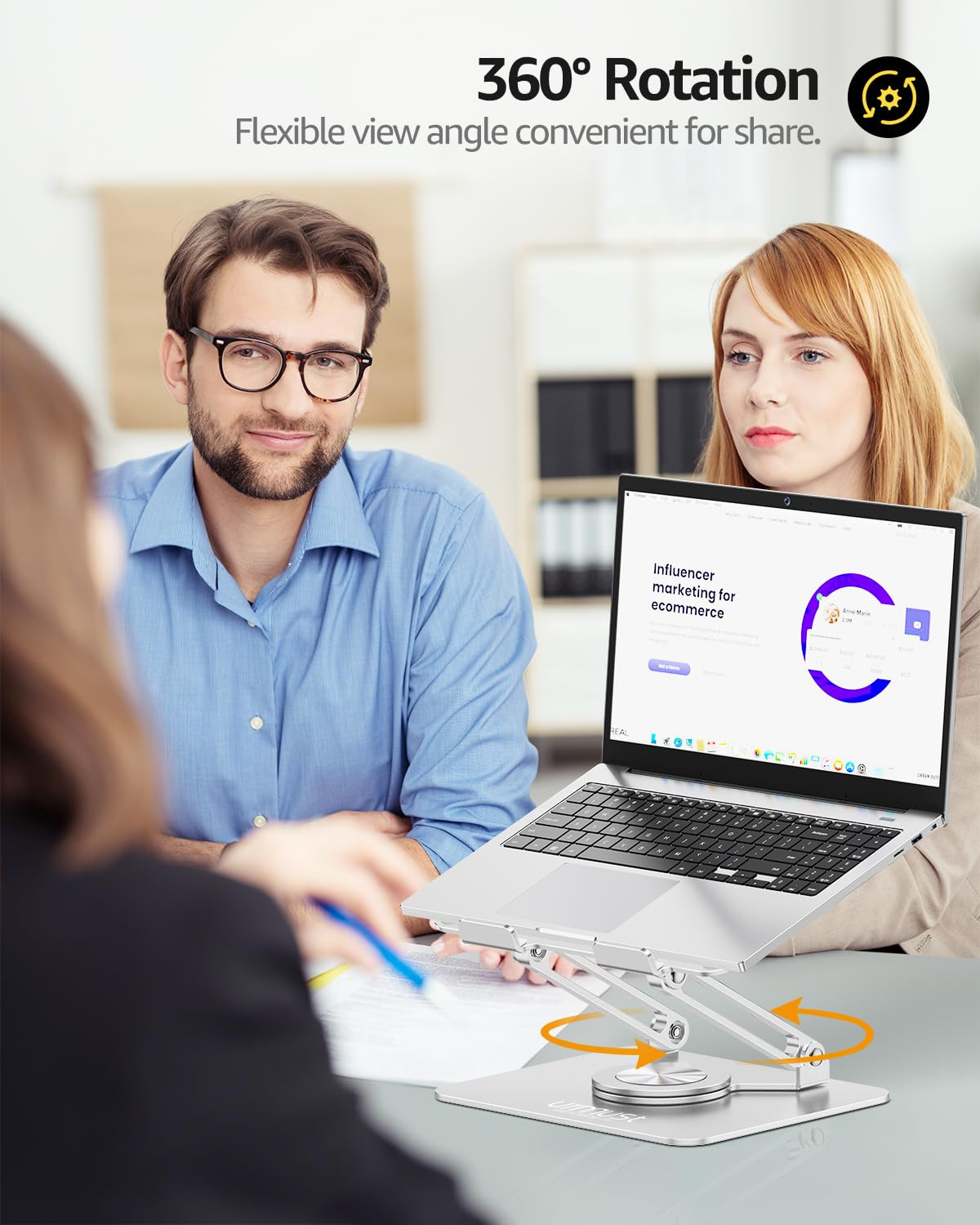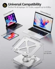 【360°Rotation】Featuring a 360° rotatable Two-axis connecting with the base, makes the 360°rotation more flexible, computer stand allows you to swivel your laptop to any angle 【Ergonomic Design】You can free adjustable laptop stand height and angle to a perfect eye level and helps to reduce shoulder and neck pain. Which ensures you in a comfortable position no matter sitting down or standing up 【Foldable & Portable】Laptop stand for desk can fully Foldable, it is easily to used, carry. Suitable for working at home, office and outdoor, make typing more easier 【Stable & Durable】laptop riser holder is made of aluminum alloy, thus gives the stand a more stable performance, Anti-skid silicone can protects your laptop from sliding 【Wide Compatibility】Laptop stand for MacBook 12 inch/ 13 inch, MacBook Air 13 inch, MacBook Pro 13 inch / 14inch/ 16 inch, Dell XPS HP Lenovo Acer Chromebook and more All 10 -16 inches laptops