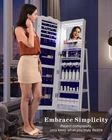 【360° Rotating Base】Jewelry cabinet designed with a sturdy rotating base, this jewelry armoire spins smoothly in any direction, making it easy to access your favorite accessories from all angles. 【Explosion-proof 53" Full-Length Mirror】Jewelry organizer features a high-quality 53'' full-length mirror, perfect for trying on outfits and checking your look from head to toe. 【Built-In LED Makeup Mirror】Mirror with storage cabinet inside with a small LED mirror for close-up makeup or jewelry selection, offering bright, clear lighting for added convenience. 【Wavy Top Design】The elegant wavy-shaped top adds a stylish touch to any room décor, blending beauty and functionality in one freestanding piece. 【Spacious & Organized Storage】Ample space with hooks, shelves, and slots for organizing earrings, rings, necklaces, bracelets, and cosmetics—keeping everything neat and tangle-free. 【Jewelry Protection with Lockable Design】The standing jewelry armoire comes with 2 keys, allowing you to securely lock your jewelry cabinet. This will effectively safeguard your precious jewelry from getting dusty or lost. Additionally, it serves as a safety measure to prevent small jewelry pieces from being accidentally swallowed by children. Standing Mirror Jewelry Cabinet with Large Capacity 3 in 1 Standing Mirror Jewelry Armoire Cabinet 360 Degree Rotatable Large Capacity with Shelf Standing jewelry armoire with shelf design, you can put your bags or shoes on the shelf, save space and time, and bring convenience to life. HD explosion-proof mirror Full length mirror made of premium explosion-proof membrane glass, which is safer during use and provide HD crystal image and natural effect. Extra Storage Drawer The jewelry cabinet is designed with an extra storage drawer, which adds to its spacious storage capacity. Built-in acrylic baffle Jewelry armoire built in small acrylic baffle, effect to protect the small jewelry from falling, also convenient to find the jewelry which you need.