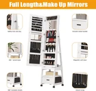 Store New Arrivals Add to Favorite View Feedback Contact 360° Swivel Jewelry Armoire, Floor Standing Locking with Full Length Mirror,Bottom Drawer, Shelf, Wheels,White Cabinet with Large Storage Capacity (White Push-Pull) Description Item model number PHO_0WZ_01 Style Modern Number of Items 1 Item Package Quantity 1 Country of Origin China Jewelry Storage Type Jewelry Armoire Batteries Required? No Number of Compartments 1 Special Feature Full Length Mirror, Wheels, Makeup Mirror, 360° Swivel, Drawer Product Dimensions 15"D x 15"W x 66.1"H Material Engineered Wood, Iron Number of Drawers 1 Finish Type Polished Closure Type Key Lock Item Weight 37.5 pounds Finish Polished Occasion Mother's Day, Engagement, Wedding, Christmas, Birthday Special Features Full Length Mirror, Wheels, Makeup Mirror, 360° Swivel, Drawer Target Audience Women Part Number PHO_0WZ_01 Mounting Type Freestanding Color White push-pull Shape Rectangular Recommended Uses For Product Face Makeup Included Components Jewelry Armoire Inner Material Engineered Wood 【4-in-1 space-saving design】This 66" high jewelry armoire offers ample storage space with its 4-in-1 design. With this cabinet, you'll get a Full-length Mirror, Jewelry Organizer (with 108 earring slots, 30 ring slots, 24 necklace hooks and 3 bracelet hooks), Makeup Vanity (with built-in makeup mirror, large mask storage bag, 3 makeup brush holders, 8 lipstick slots, 2 powder eyeshadow boxes and 3 skincare shelves) and a Multifunctional Storage Shelf (with storage drawer, glasses rack, scarf rack and 3-tier storage platforms) 【HD full-length mirror】Large full-screen mirror without smelly glass glue & clown mirror effect provides a head-to-toe view of outfit. Anti-splash explosion-proof film to prevent scratches when accidentally hitting the glass, safer for home use. 【360° rotating base and lockable wheels】Effortlessly move the jewelry armoire with lockable wheels and select the perfect viewing angle with the 360° rotating base. It allows easy access to items behind the cabinet and is ideal for those who prefer not to face a mirror while sleeping. 【Elegant design】Crafted with high-quality materials, our jewelry armoire features a fashionable matte white finish, exuding an elegant aesthetic that complements any room decor. Its design embodies the principles of the Golden Ratio, elevating the style of your space. 【Well-thought-out details】The velvet lining offers excellent protection for your jewelry, ensuring their longevity; The elastic velvet pockets in the necklace area prevent long necklaces from getting caught in the door or making noise when opened; Two keys are provided for locking the jewelry armoire securely; With its low center of gravity and triangular design, the armoire is stable and tip-resistant. 【Pre-assembled】The interior of the jewelry armoire comes fully pre-assembled, requiring only simple installation of the base and frame. Our packaging utilizes custom high-density foam molds to ensure safe delivery without any damage. The moment you open the package, you'll fall in love with this stunning jewelry armoire! Product Description Alkmaar Jewelry Armoire, a great helper for storage your precious jewelry! Own it, make your life more convenient. Soft velvet inside protects your jewelry from scratching. Full-length body mirror offers you a HD viewsight. 360° Swivel base design rotates freely with no blind corner. Large storage space let you say goodbye to chaos. Storage drawer and shelf easily store your daily items for better organization. Lockable with key design protects your privacy and keep children away from your jewelry. Made of high-quality wood, the floor standing jewelry armoire ensures a long-term use. Alkmaar 4-IN-1 Jewelry Armoire One Full Length Mirror One Mordern Jewelry Cabinet One Bottom Storage Drawer 3-Tier Rear Storage Shelves Soft Velvet Necklace Pockets Protect your necklace from fading or snagging Large Storage Space Collect so many jewelry and other beautiful items without running out of storage space. Clear PVC Box Storage your powder, lipstick, and eyeshadow Protective Design White shelf prevents your valuable skin care products from falling off Safety Lock Design Protect your privacy and keep your jewelry safe Opening Shelf Design Easily place everyday items such as glasses and scarves 3 Layer Rear Storage Shelves Storage your handbag, shoes, storage bin or others 360° Swivel Base Design Allow you see your dress up from any Angle before going out Large Storage Drawer Easily place your facial mask, travel makeup bag, lotion and stuff ABOUT US We offer the best prices around on high quality products. Our E-store includes media such as books, movies, music and games while offering electronics, toys, sporting apparel, clothing, tools, general home, garden items and more. SHIPPING We are always working hard to ensure your package arrives as soon as possible. Please understand that some factors like weather, high postal traffic, and the performance of shipping companies are outside of our control. We offer free shipping to the lower 48 states and ship within 2 business days of payment, usually sooner. We do not accept P.O. Boxes. Please provide a physical address. For shipping outside of the continental USA, we only use eBay's Global Shipping Program.The item is shipped to KY and then sent to the rest of the world. International customers are responsible for all duties and taxes. Continue to check out in order to calculate costs for shipping the item to your country. Messages regarding eBay's Global Shipping Program MUST be directed at eBay EXCLUSIVELY. RETURNS We offer a 30-Day Return Policy on items which you are not completely satisfied with. You have the option for a full-refund or an exchange of the item. No returns are available on items shipped outside of the USA. PAYMENT We accept PayPal. CONTACT US This page content is yet to come Please ad us to your favorite seller and visit again later Th