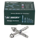 Wedge Anchor Bolts, Heavy Duty Anchors for Concrete, Anchors Bolts for Indoor and Outdoor Applications Our wedge anchor bolts for concrete are available in diameters of 3/8", 1/2", 5/8", and are available in zinc plated carbon steel and stainless steel to make the through bolt resistant to rust. Wedge anchors can be used in solid concrete applications, and suited for fastening purposes such as structural anchorage, storage racking anchorage, metal doors and window frames, wall mounting, plumbing systems, electrical equipment, machinery and hand rails installation, etc. Package include 25 pieces wedge expansion anchors, each with one nut and one washer. Installation Instructions 1. Using the hammer drill to drill a hole in the concrete, which is as big as the diameter of the wedge anchor. 2. Clean out all the dust and debris of the hole. 3. Hammer the anchor into the drilled hole to the desired depth. 4. Tighten the nut with a torque wrench to ensure the bottom portion wedge is expanded in order to lock the anchor in place firmly. Notes Please do not use in block or brick base material, only suitable for cement, solid concrete and grout-filled concrete masonry. [Anchor Bolts Specifications] Diameter-3/8", Length-3-3/4", Qty-25 pieces [Heavy Duty Material] Our cement anchor bolts are made of stainless steel, durable and corrosion resistance for long using [Ideal Applications] Concrete anchor bolts work well for any mounting and structural anchorage purpose in any condition, suitable for applications in solid concrete and cement, Do not use in block or brick base material [Multi-Purpose] Wedge anchor bolts for concrete are designed for both indoor and outdoor use. Must be inserted for minimum embedment depth to obtain minimum holding values, and comes assembled with nut & washer for your convenience [Easy to Use] Just drill a hole as big as the diameter of the anchor in concrete (larger holes may cause the bolt to spin when tightening) , remove debris and dust from the hole, hammer the concrete bolts into the hole, then tighten the nut with a wrench to complete the installation