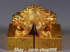 **** Welcome to our antique & Collectable Shop : Porcelain**** Description: Here is 3.9" Old China Dynasty Copper Gold Double Dragon Loong Beast Seal Stamp Signet . It is in good condition, and was created by skilled craftsmen in traditional style with fine handcrafts.This is a great piece of valuable collection, a valuable personal alter or a very good present. the handwork is very fine with incredible detailling. Don't miss out this chance to get it.Wish you good luck! . Material : Copper Gold Size : Heigh t 3.3 Long 3.9 B readth 2.0 (inch) Condition Perfect Condition. Perfect, with no scratches, flaws or repairs. Weight: 2.7 KG----included the weight of packing materials Shipping cost to all over the world countries in Free Honored Customers: We are selling the collectibles products and crafts in Beijing ,China since 1993 and collected them all over the world all the time . In our shop the bronze sculpture, animal, vase, urn, flowerpot,Incense Burner.Table chair sets. Militaria goods. buddha statues, Bodhisattva Statues, Buddhist Ritual Items etc is our speciality .Many of the items we sell come from our own personal collection and have been in our family for a very long time .My great-grandfather was the first in this family to start collecting art & antiques when he still lived in San Xi and Tibet around 1922 ,some of the paintings he once collected can now be seen in museums around the globe.We won't make money from t he shipping cost, if you dislike the item when you receive it,we can refund all of your money to you within thirty days. Please confidence for bidding . We recommend the combine shipping and offer you an big price discount if you order more items together ! 2024.10.03 四 号