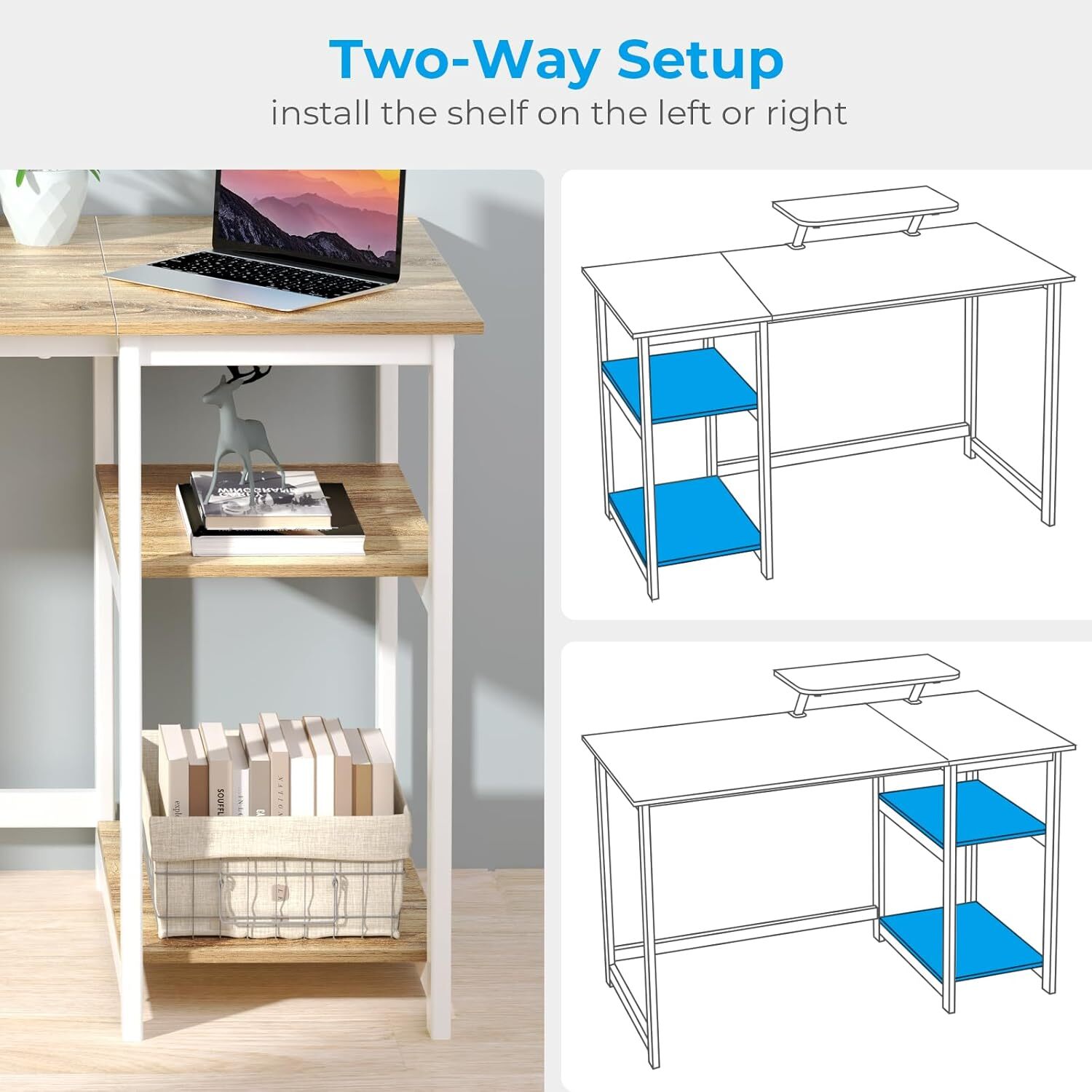 Shape Rectangular Desk design Computer Desk Top Material Type Wood Number of Drawers 3 About this item BUILT-IN MONITOR STAND: The stand size is 18.89*7.87 inches that can place a computer montior and for you to mantain a comfortable sitting posture. Moreover,free up more desktop space to place laptop,earphone, keyboards and daily necessities. REVERSIBLE STORAGE SHELVES: Computer desk with 2-tier storage shelves can be installed on left or right side according to your space or use habits.Open shelves can hold your books,storage box etc.You can remove the middle shelf to get more space for large computer tower STURDY STRUCTURE: Constructed by 40mm premium metal frame and thick particleboard,the home office desk is absolutely stable and sturdy,ensuring you enjoy your work on this desk.Modern Simple black desk can match any style of space COMPUTER DESK SIZE: 39.37 x 19.68 x 29.52 inch(L*W*H).The 26.37 inch width under the desktop provides plenty of leg room for movement,it is the best chocie as for work desk,writing desk,study desk, gaming desk Style Desk Design Computer Desk Finish Types Laminated Color Oak Shape Rectangular Style Name Modern Leg Style Modern Top Color Beige Furniture Finish Laminated Measurements Number Of Shelves 2 Minimum Height 75 Centimeters Maximum Height 75 Centimeters Working Surface Diagonal Length 112 Centimeters Number of Drawers 3 Item Dimensions D x W x H 39"D x 19.68"W x 29.52"H Size 39 inch Tabletop Thickness 1.9 Centimeters On Feb 12, 2025 at 18:04:22 PST, seller added the following information: