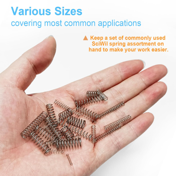390PCS Compression Springs Assortment Kit 28 Different Sizes Mini Stainless S US Warehouse - FREE & FAST Shipping in US Product Description: 【390-PIECE COMPREHENSIVE SET】 Includes 28 different sizes of compression springs (wire diameter range from 0.3-0.8mm; Outer Diameter range from 2-8mm; Free Length range from 5-30mm), covering most common applications in DIY projects, automotive repairs, industrial machinery, and household fixes. No more searching for individual springs 【PREMIUM CONSTRUCTION】 Made of high-quality 304 stainless steel, these springs resist rust, corrosion, and wear, ensuring long-lasting performance even in humid or high-stress environments. The stainless steel spring may exhibit slight magnetism due to manufacturing processes like cutting and forming. This is a normal characteristic and will not impact its performance 【EASY STORAGE & QUICK ACCESS】 Springs come in a reusable compartmentalized case with labeled sections, keeping your workspace tidy and saving time on projects 【WIDELY USED】 Ideal for garage organizers, robotics, valves, printers, agricultural equipment, and more. A must-have for mechanics, engineers, hobbyists, 3D printer and homeowners Feedback: 1.Any question for your order, please contact us in time, we will reply to you within 24 hours and give you a satisfactory answer. 2.If you are satisfied with our products and services, hope to take up your a little precious time to leave feedback reviews for our products.Thanks! 3.Your satisfaction is our effort. Welcome to order again! Have a great day! Our Policy: 100% Satisfaction Guarantee 20% of restocking fee will be charged for return item