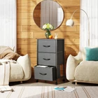 Dresser with 3 Drawers, Fabric Nightstand, Cabinet with Wheels, Organizer Storage Dresser for Bedroom, Office, Closets, Sturdy Steel Frame, Easy Pull Handle, Dark Grey 🏠MULTIFUNCTION CABINET: Match perfectly with other storage towers; This chest of drawers is great for closets, bedrooms, playrooms, entryways and more ✨SUFFICIENT STORAGE SPACE: Drawers are great for organizing your clothes, blankets, scarves, socks and other accessories; Wood top provides hard surface for displaying lamps, clocks, books, glasses etc ✨STURDY STRUCTURE: Strong steel frame and water-resistant wood top offers stable support and ensue years of use; High-quality non-woven fabric drawers is easy to clean ✨3 DRAWER CHEST: Features 3 removable foldable drawers; Easy pull handle helps open and close the drawers simply;the wheels under the storage tower can be rotated 360 °, the paddles of the wheels can be pressed to fix the storage tower ✨EASY ASSEMBLY: Provide detailed assembly guide, screw parts clearly marked, reserved holes and tools, quick assembly about 30 minutes. This nightstand measures: 15.7" L x 11.8" W x 29.5" H