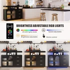 Farmhouse Bar Cabinet with LED Lights, Power Outlets & Storage